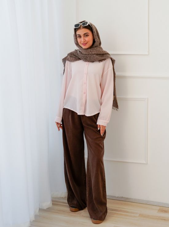 - توضیحات محصول: جنس شومیز ترگال می باشد. شومیز یقه مردانه و آستین بلند می باشد. دکمه های شومیز کاربردی بوده و این محصول دارای تک جیب کاربردی است. میزان آبرفت از طریق جدول راهنمای سایز قابل مشاهده است.