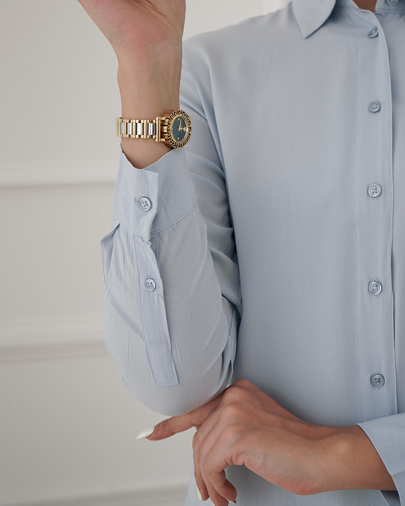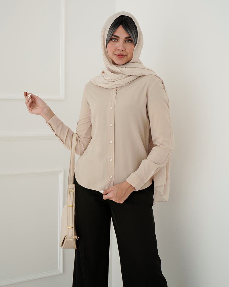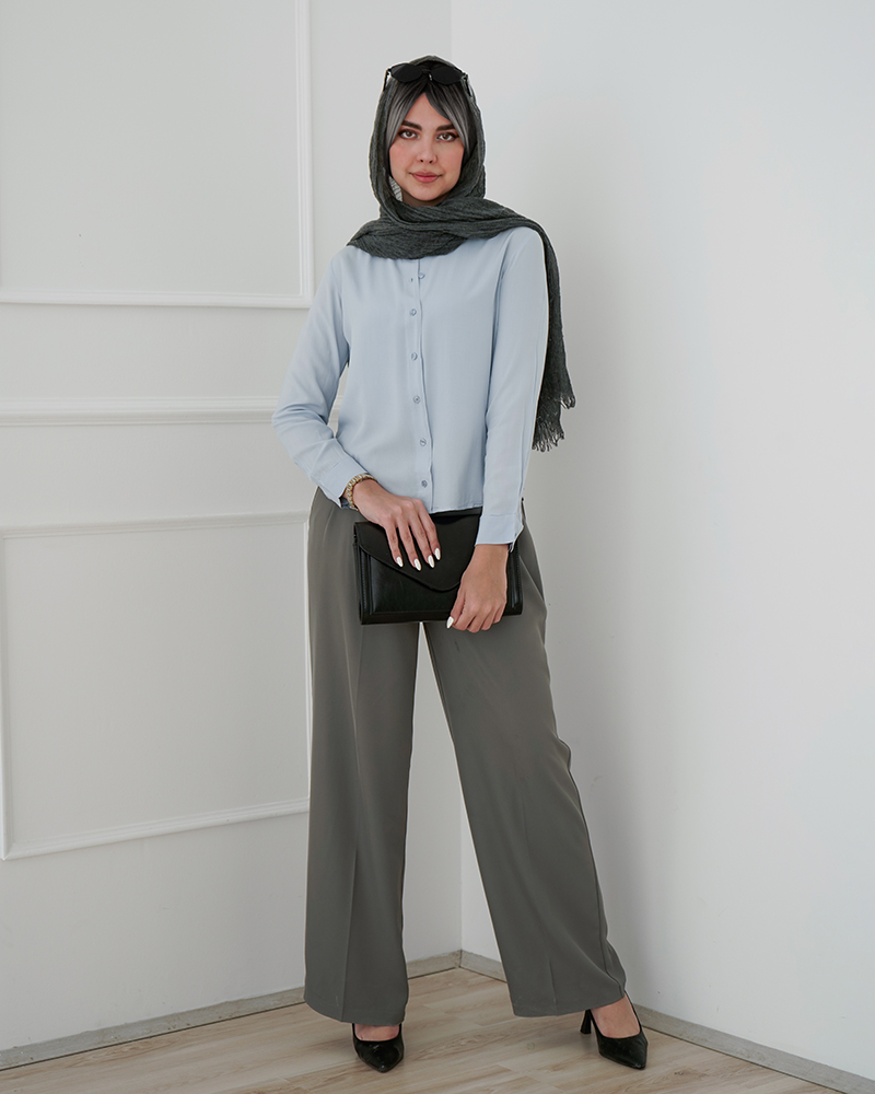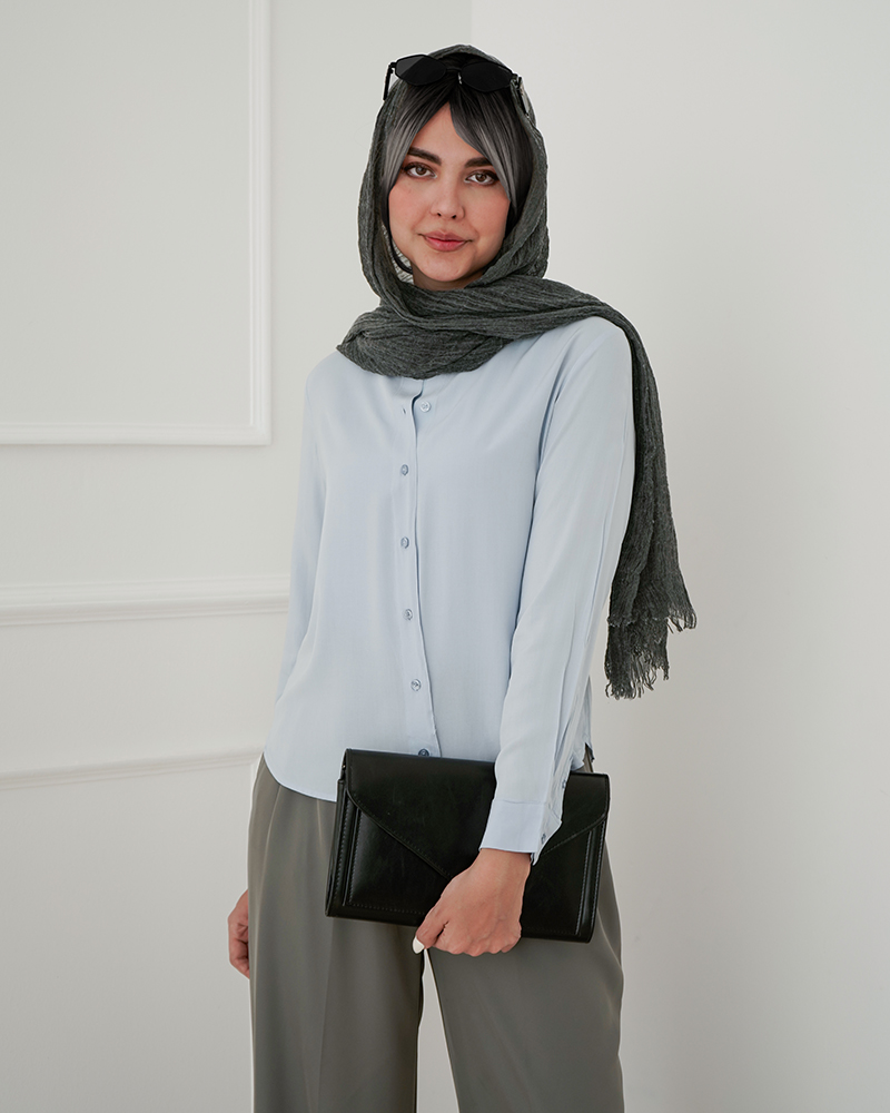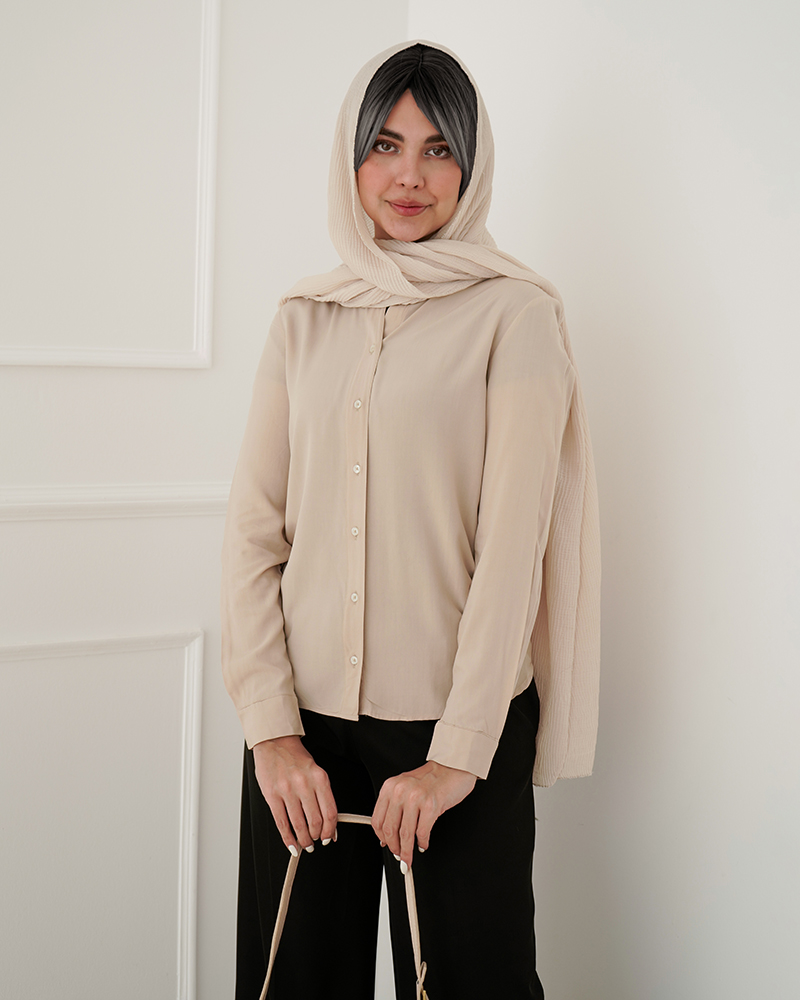 - توضیحات محصول: جنس شومیز، نخی است. شومیز، یقه مردانه می باشد. دکمه های سر آستین و جلو شومیز، کاربردی هستند.