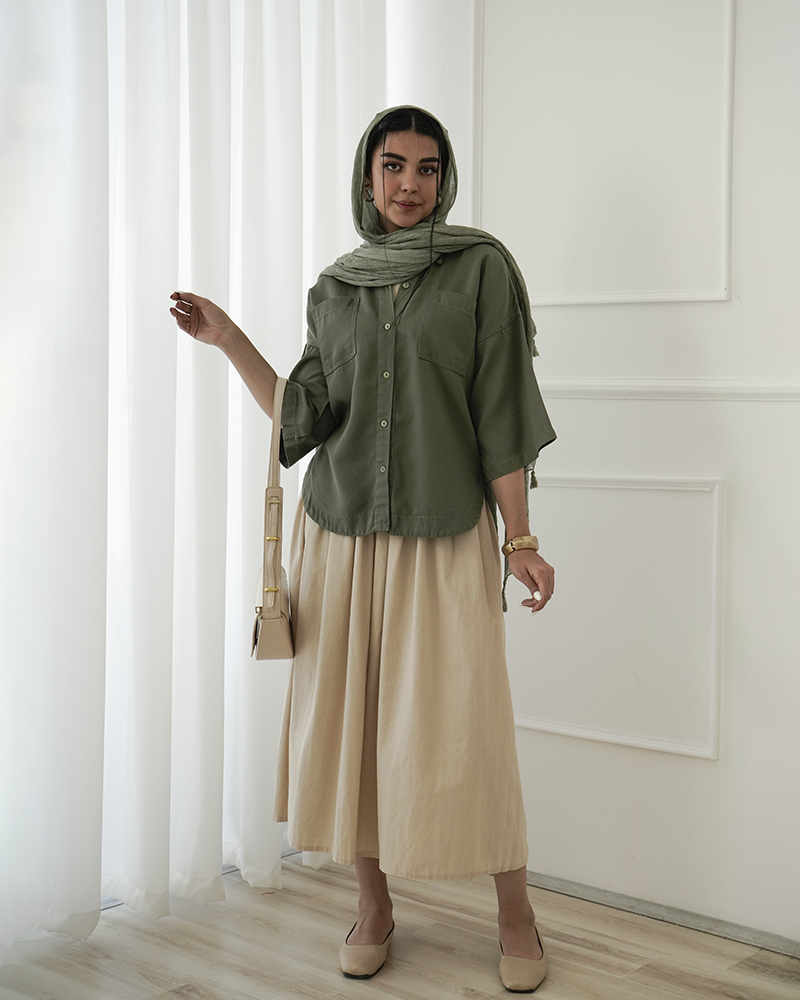 - توضیحات محصول: جنس شومیز کتان سیلک می باشد. شومیز یقه مردانه و دارای دو جیب و دکمه های کاربردی در قسمت جلو می باشد. این محصول بسیار با کیفیت و بادوام مناسب استفاده روزمره در تمام فصول سال می باشد.
