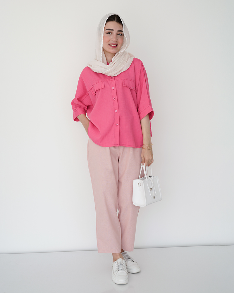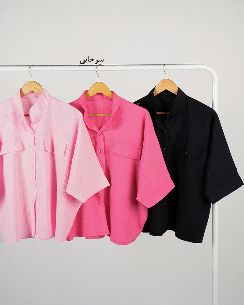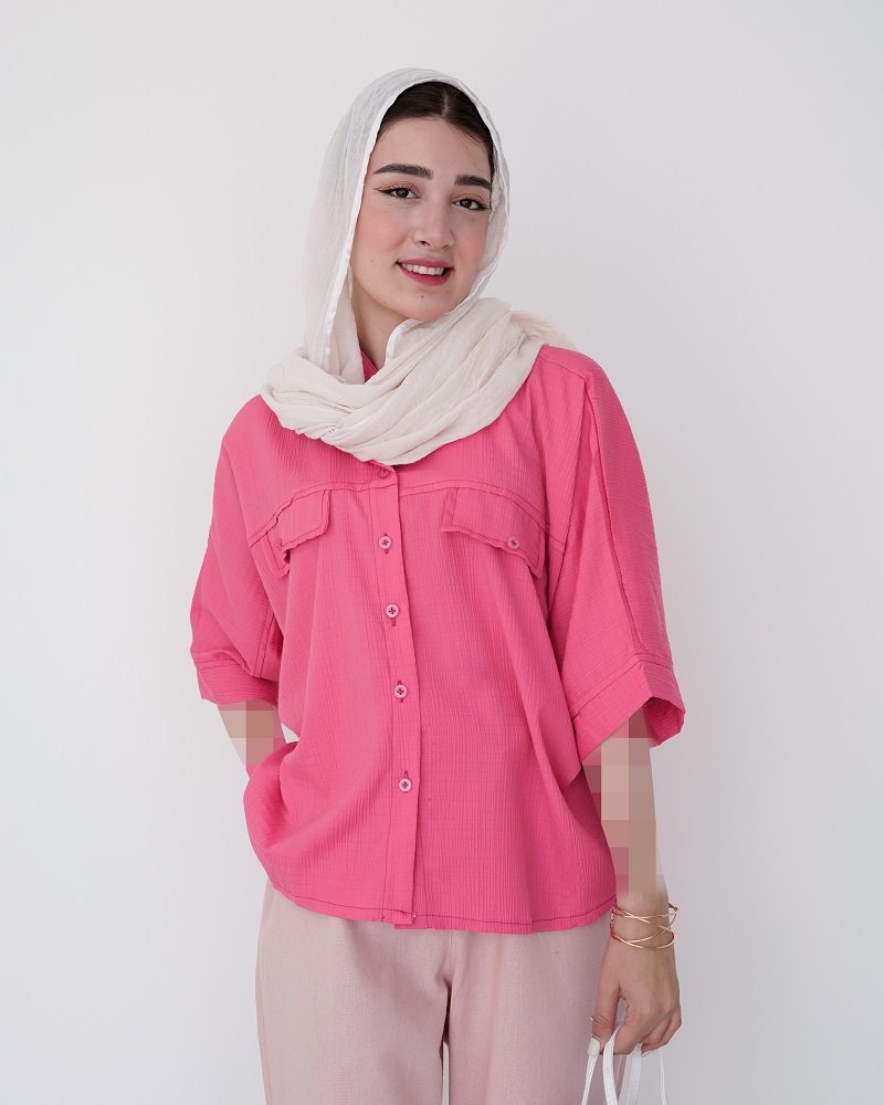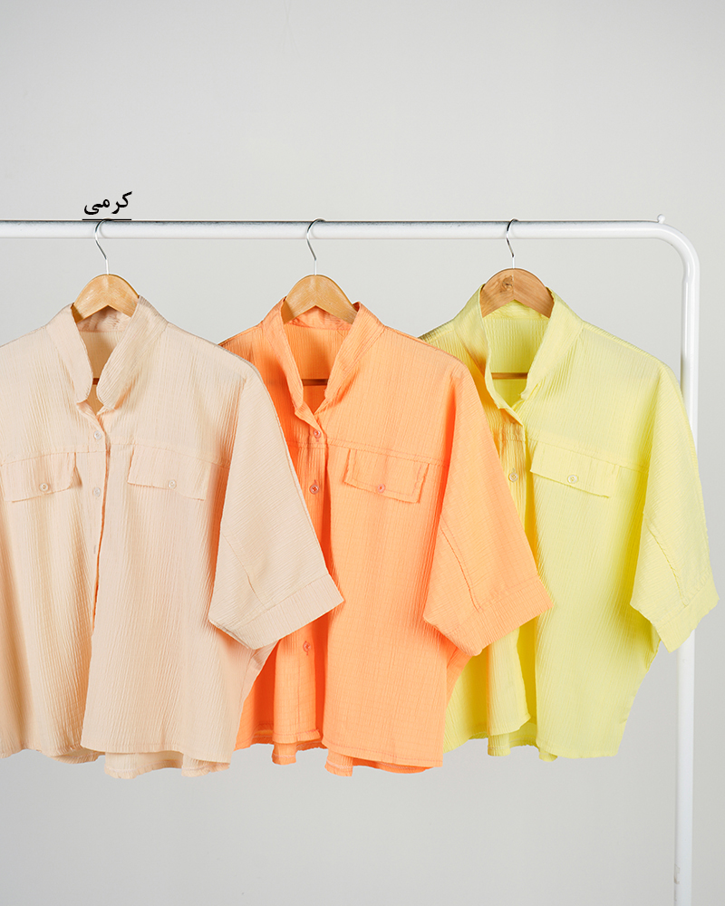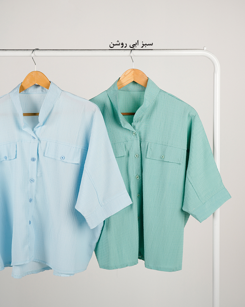 - توضیحات محصول: جنس شومیز، السا است. جیب ها نما و دکمه ها کاربردی هستند.