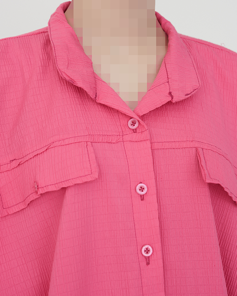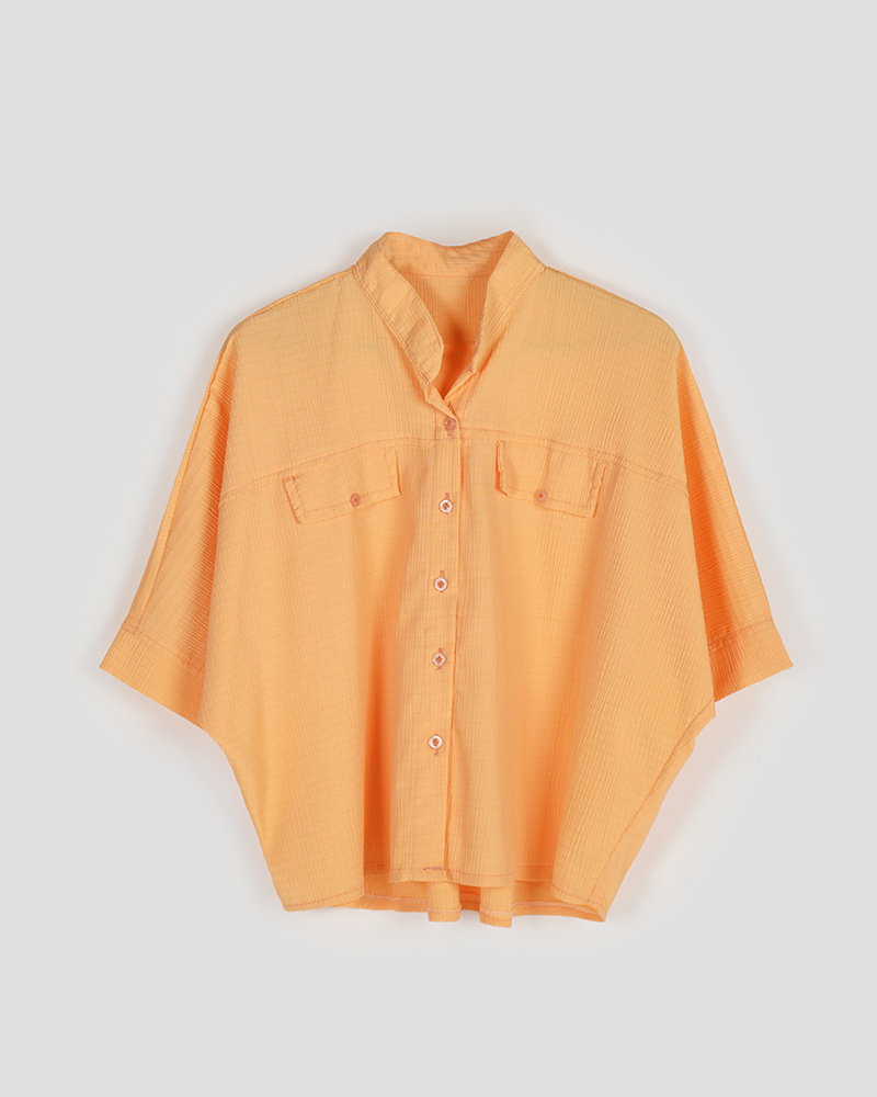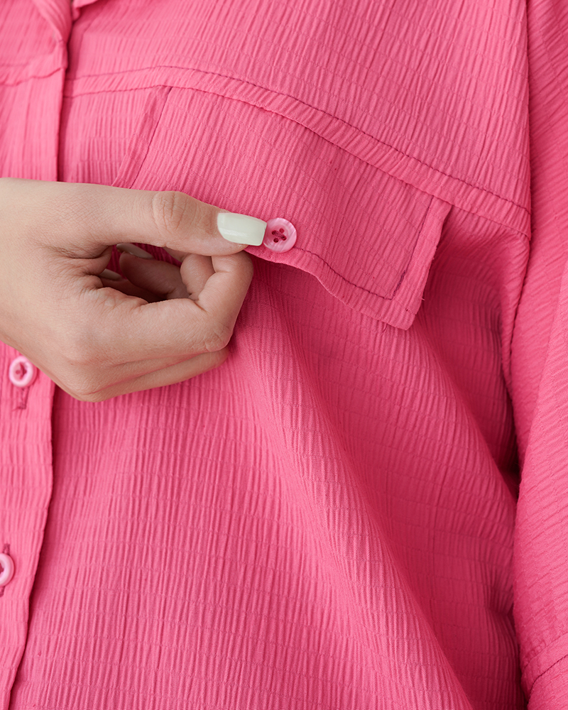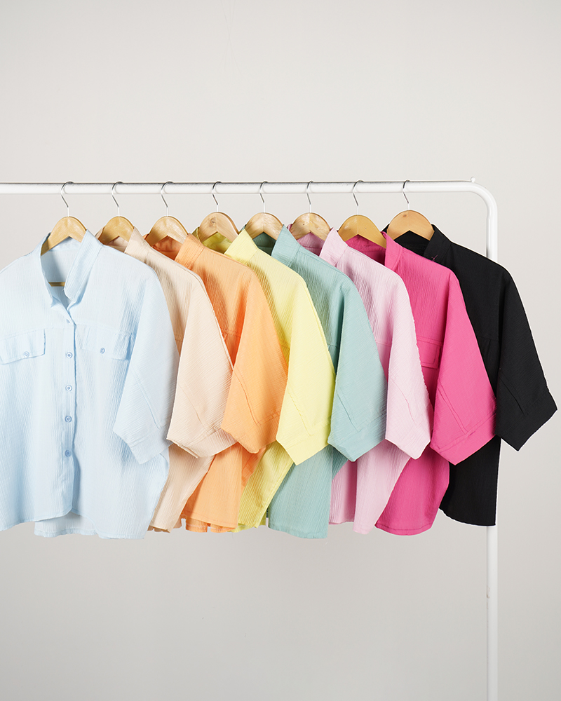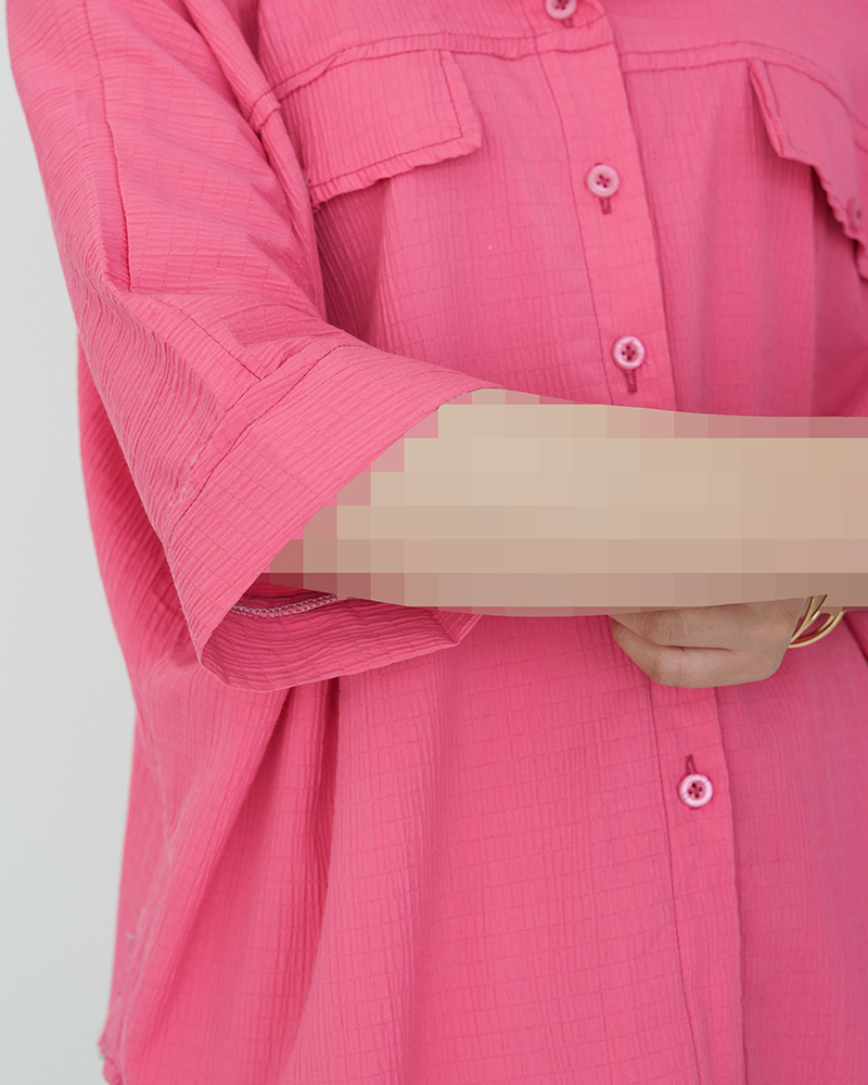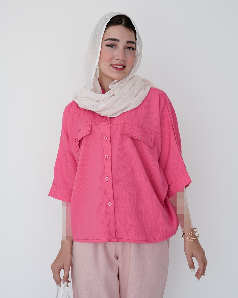 - توضیحات محصول: جنس شومیز، السا است. جیب ها نما و دکمه ها کاربردی هستند.
