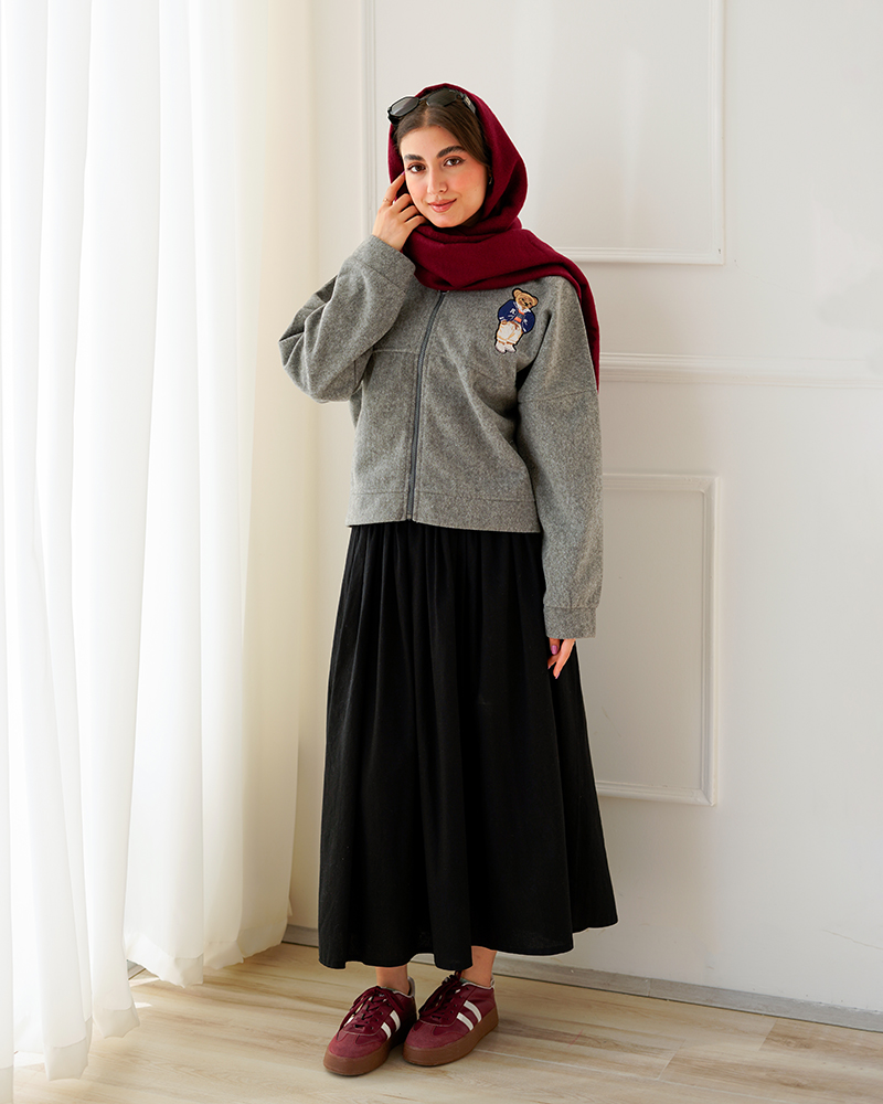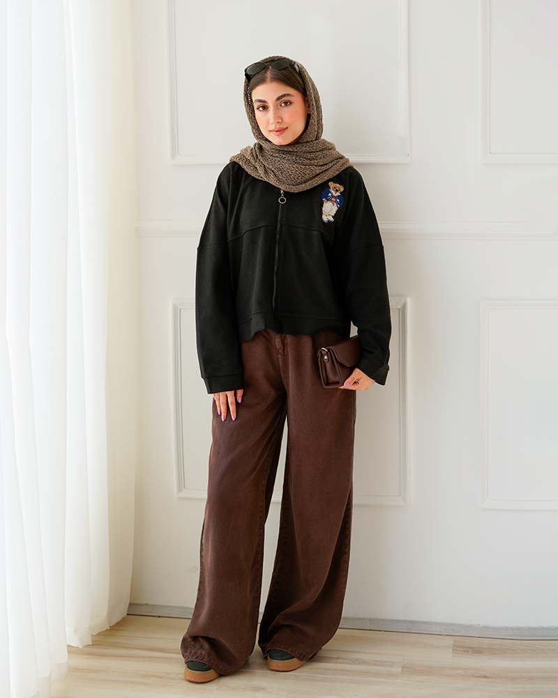 - توضیحات محصول: جنس سویشرت، فوتر است. طرح روی سویشرت، گلدوزی می باشد. سویشرت، جلو زیپی است.