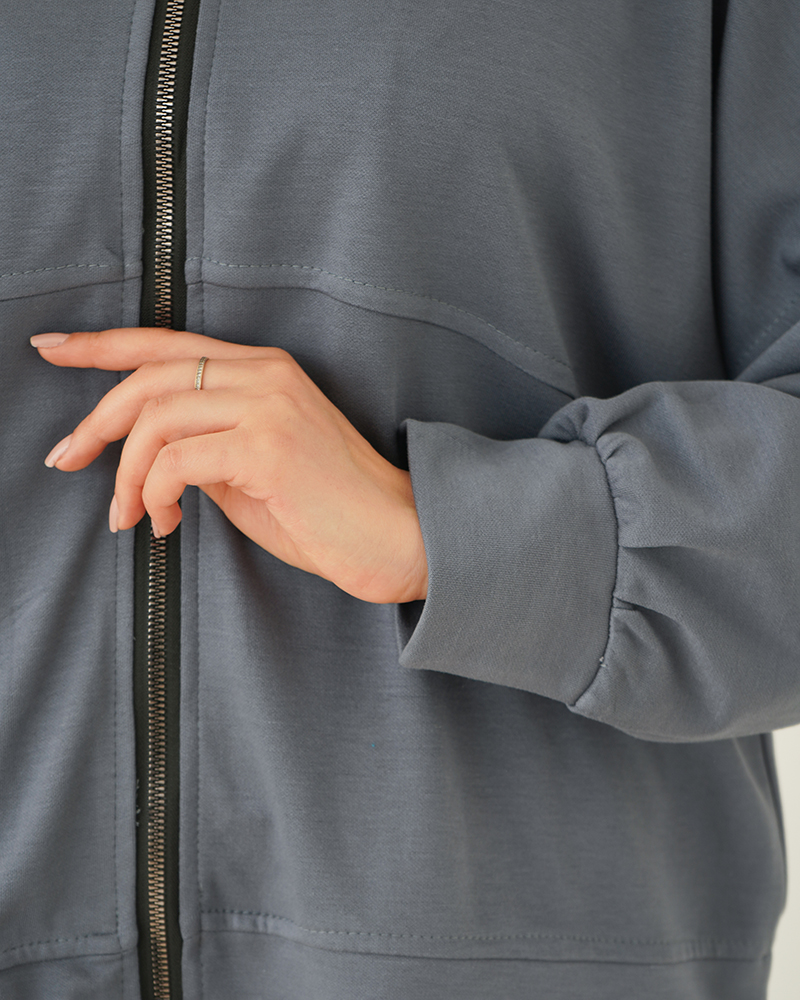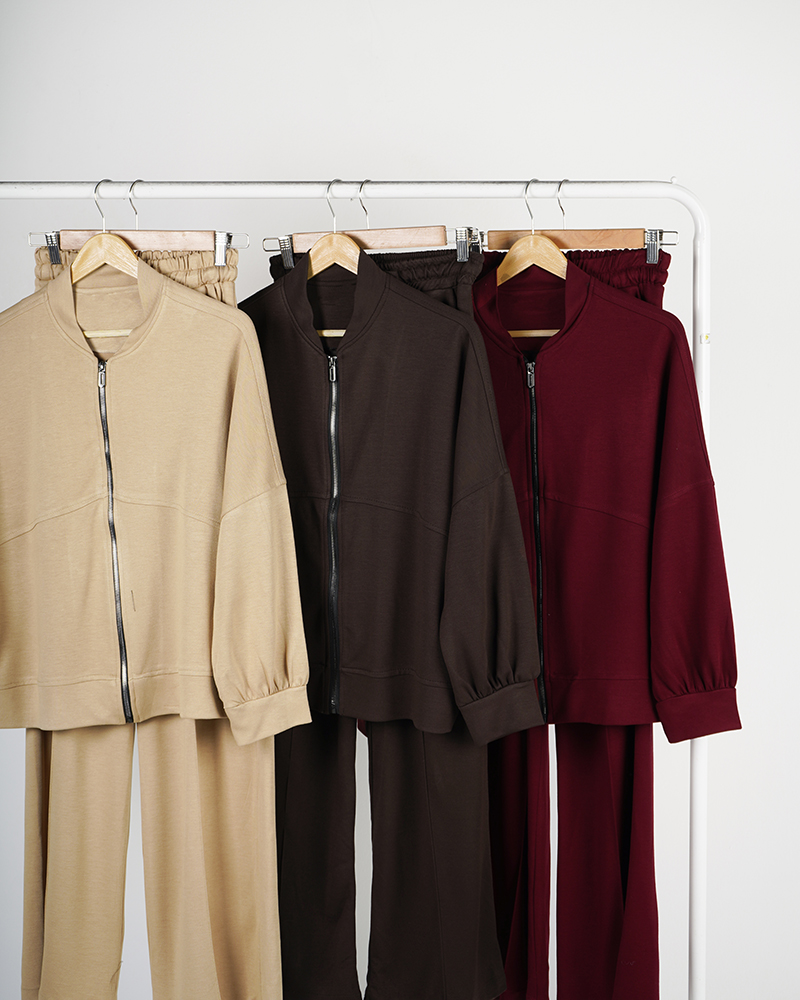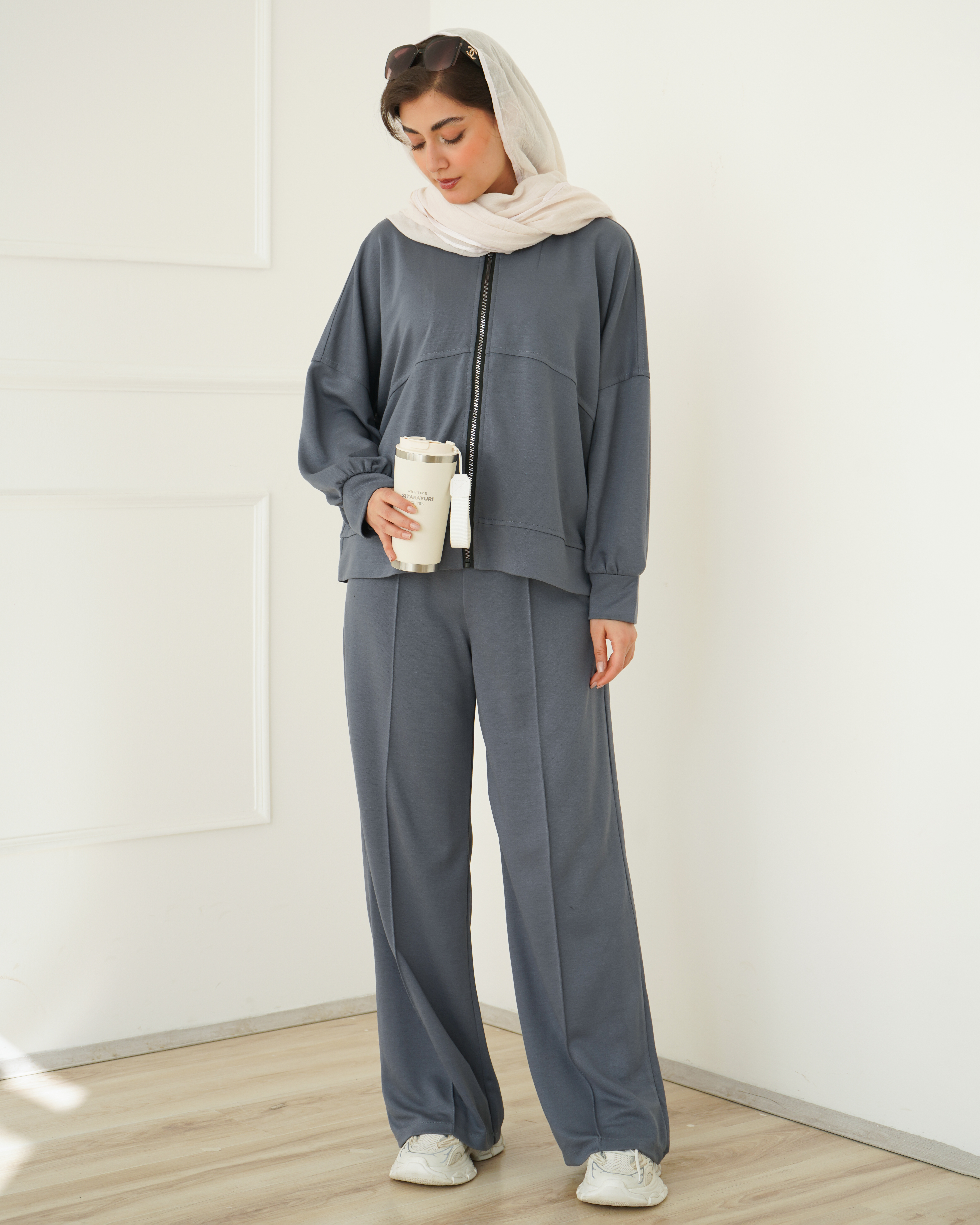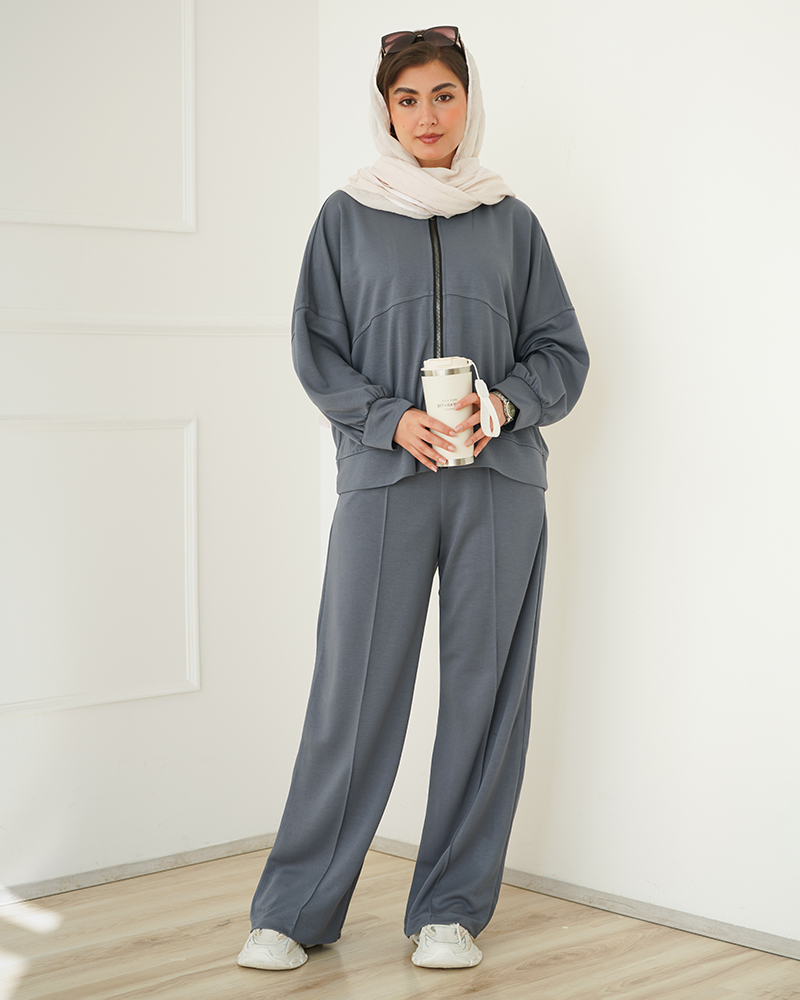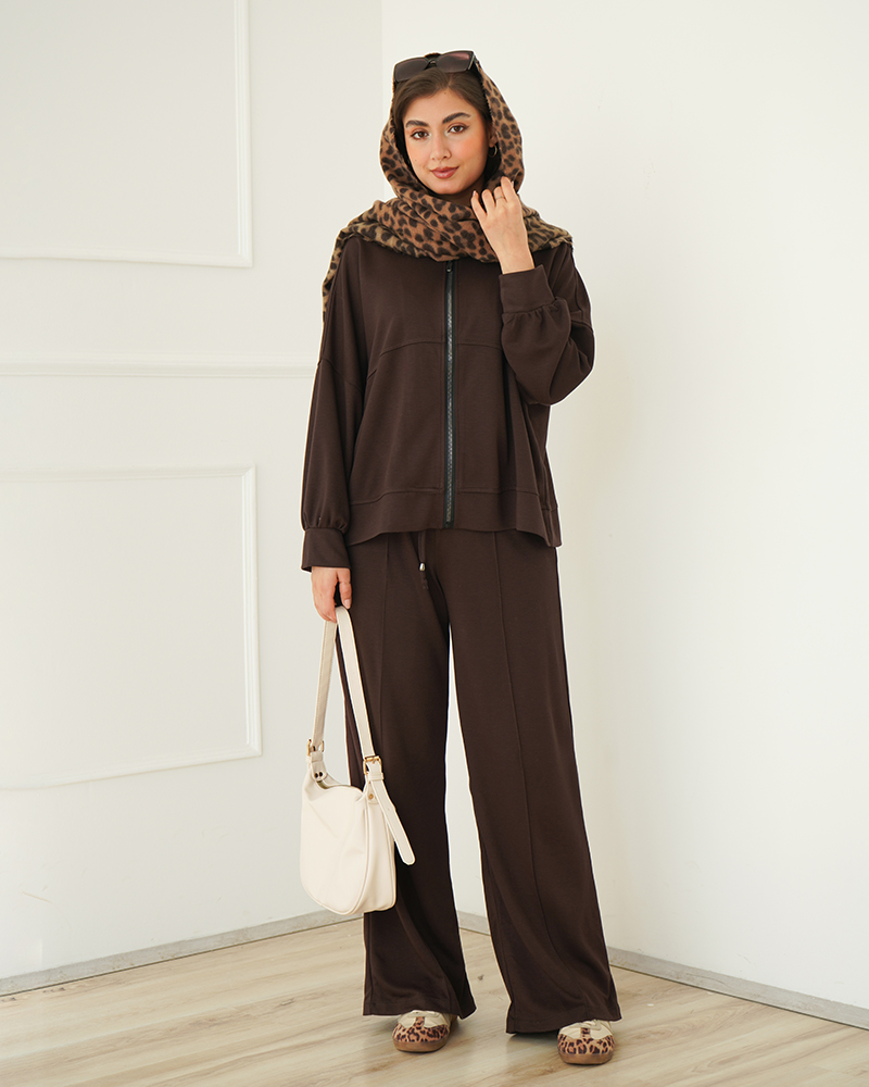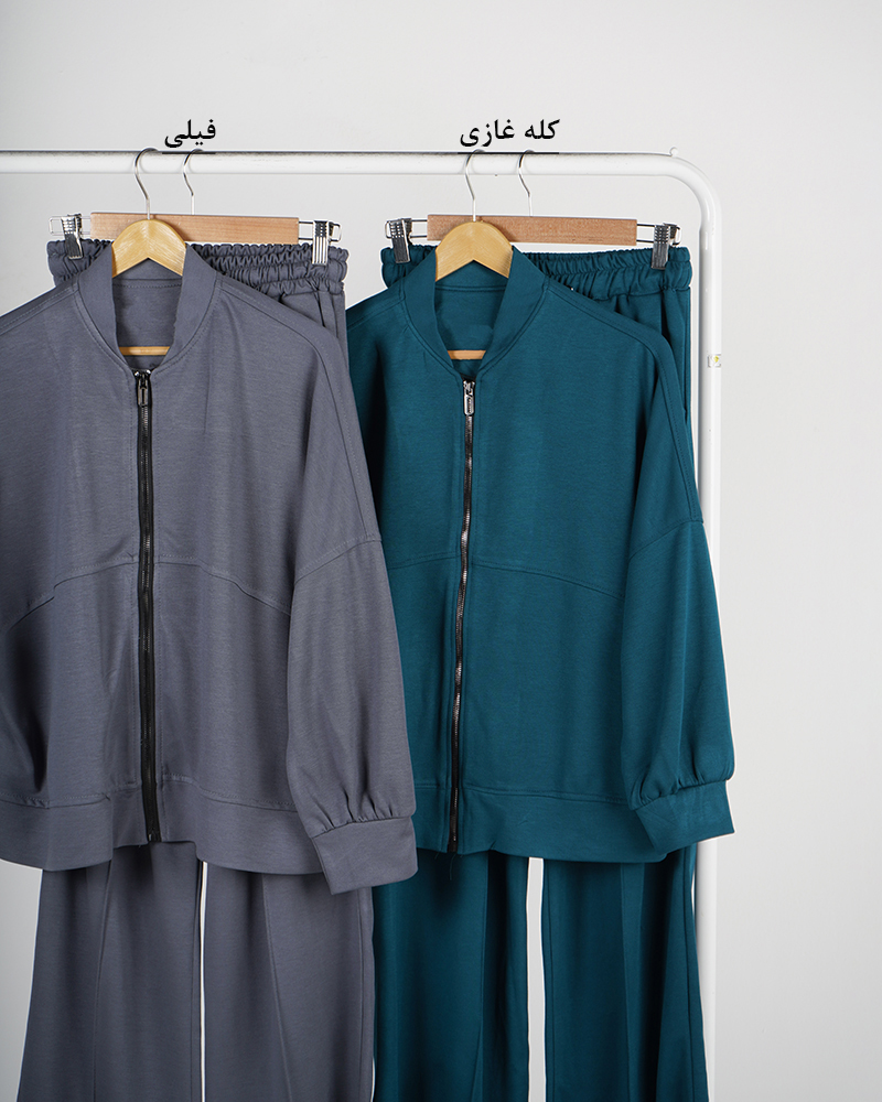 - توضیحات محصول: جنس ست اویشو می باشد. این ست شامل یک شلوار و یک سویشرت می باشد. یقه سویشرت ایستاده و این ست فاقد آستر می باشد. این محصول جلو زیپی می باشد. کمر شلوار تماما کشی بوده و بند دور کمر و جیب ها کاربردی هستند.