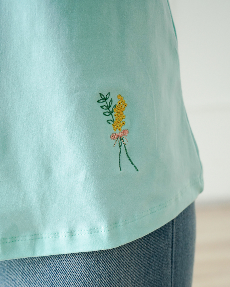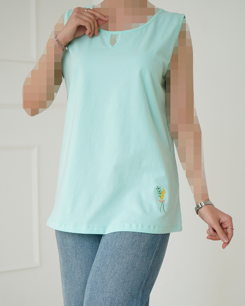 - توضیحات محصول: جنس تاپ نخ و پنبه بسیار با کیفیت می باشد. تاپ یقه گرد و استین حلقه ای می باشد. طرح روی تاپ گلدوزی می باشد. این محصول بسبار خنک و راحت همراه با کشسانی بالا مناسب استفاده روزمره می باشد.