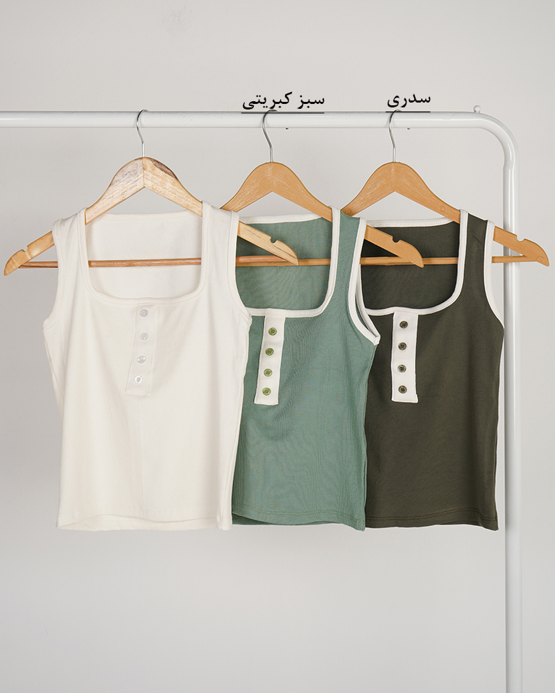 - توضیحات محصول: جنس تاپ کراپ فانریپ کبریتی می باشد. تاپ یقه خشتی و حلقه ای می باشد. دکمه های قسمت یقه نما می باشد. این محصول بسیار با کیفیت ،نرم و لطیف همراه با کشسانی بسیار بالا مناسب استفاده روزمره می باشد.