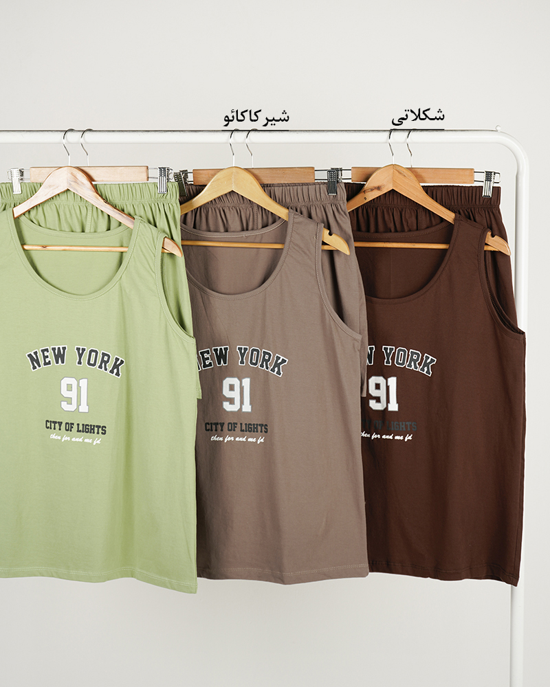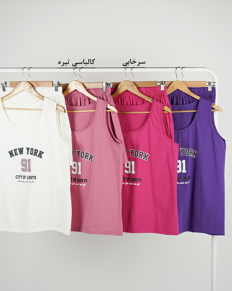 - توضیحات محصول: جنس ست، نخ پنبه است. تاپ، یقه گرد و آستین حلقه ای می باشد. طرح های روی ست، چاپی هستند. کمر شلوار، تمام کشی است.