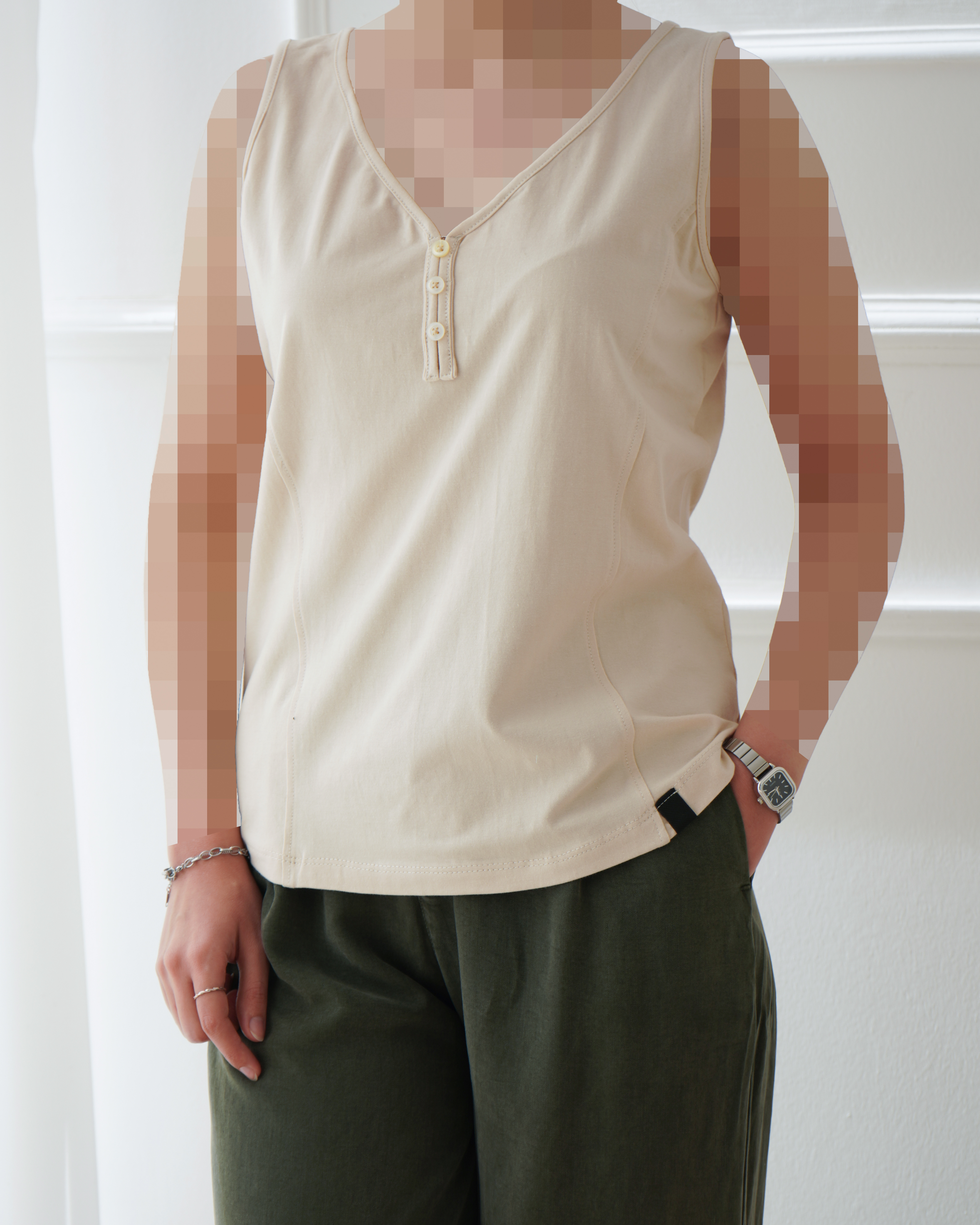 - توضیحات محصول: جنس تاپ نخ و پنبه می باشد. تاپ یقه دلبری و آستین حلقه ای و دکمه های زیر یقه نما هستند. این محصول بسیار خنک ،راحت و لطیف همراه با کشسانی بالا مناسب استفاده روزمره می باشد.