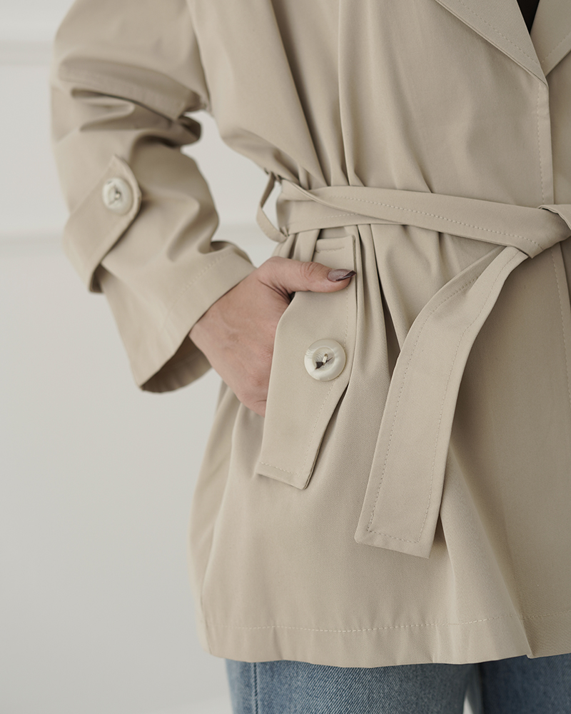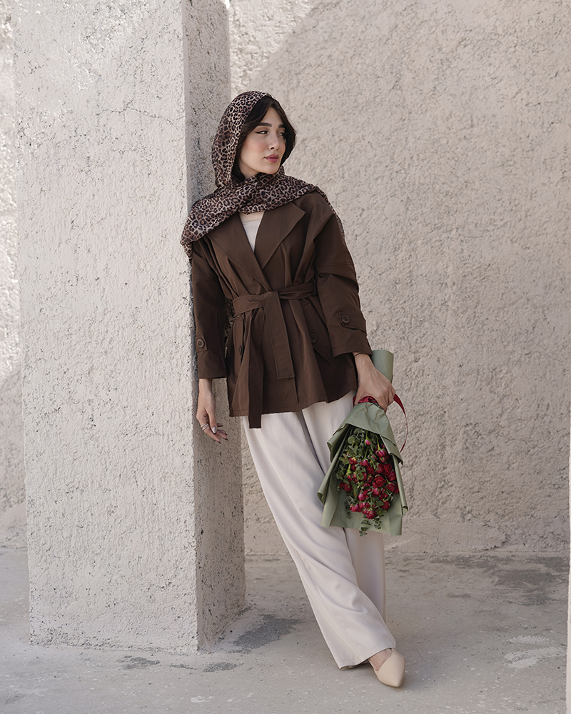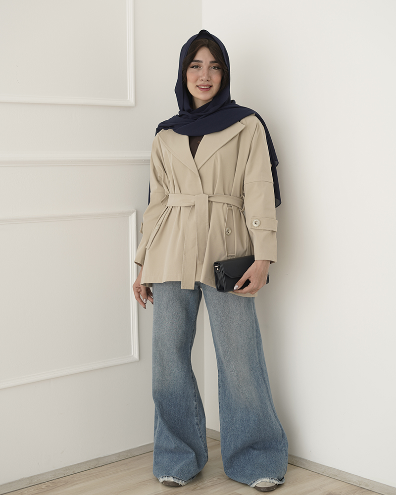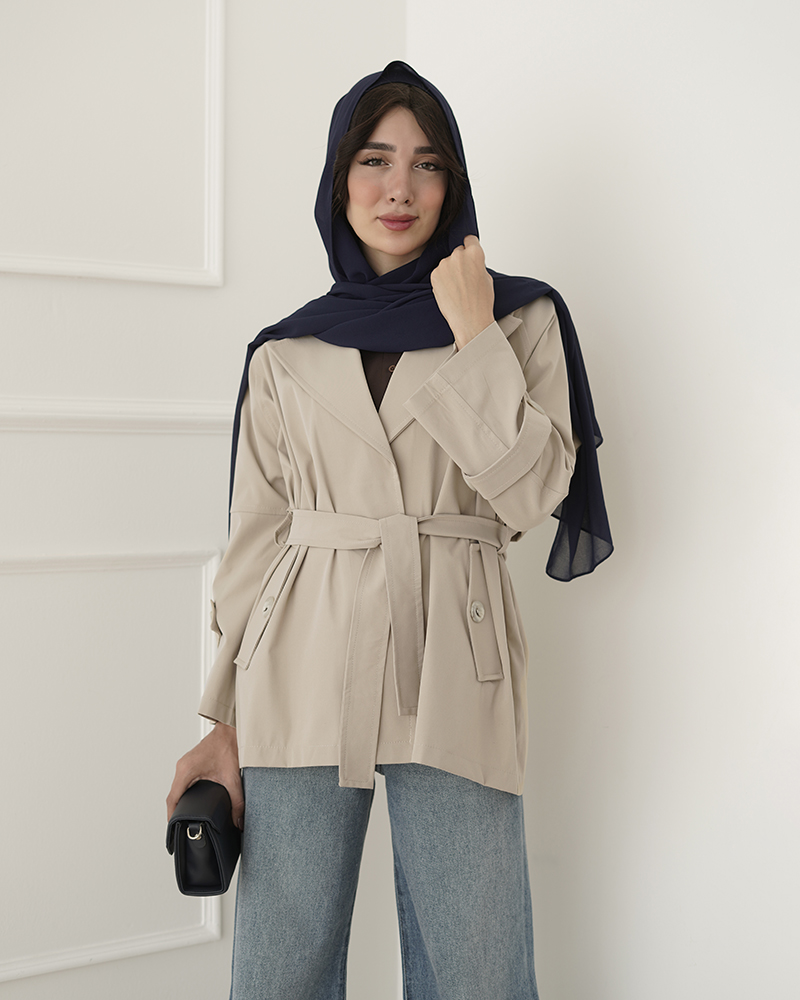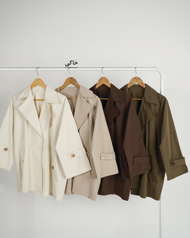- توضیحات محصول: جنس ترنج کت کتان تی سی می باشد. ترنج کت یقه انگلیسی و فاقد آستر می باشد.