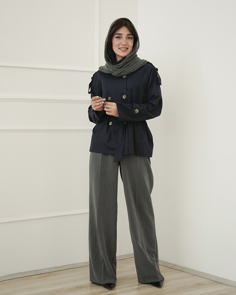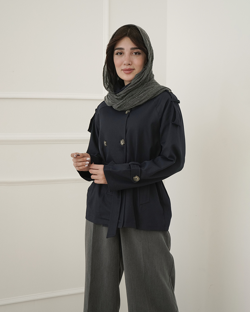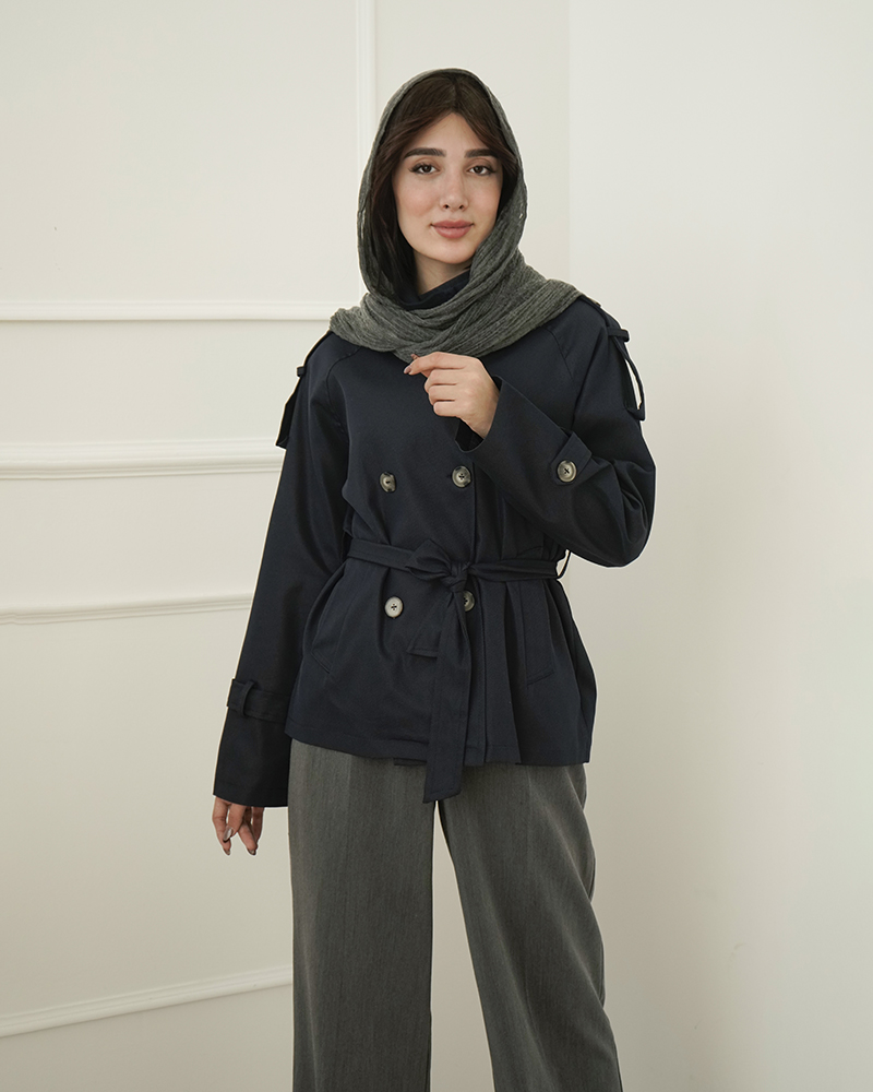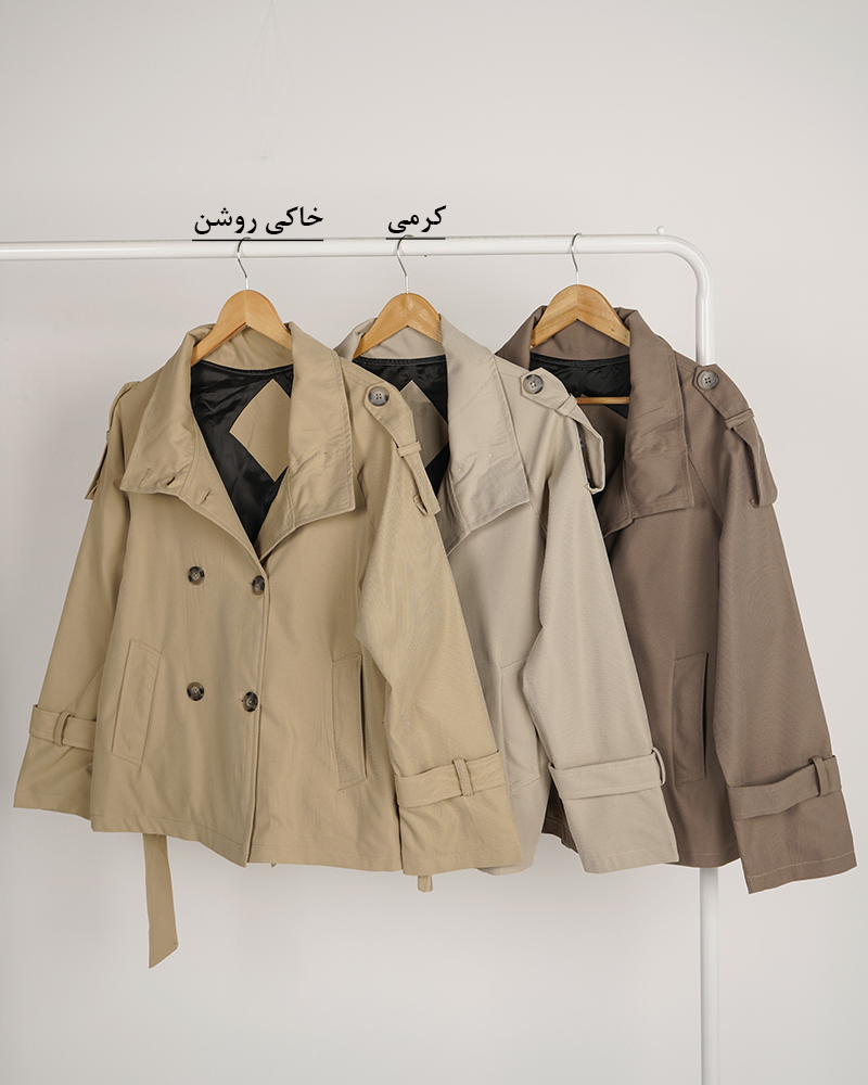 - توضیحات محصول: جنس ترنج کت، کجراه (آستردار) است. دکمه ها و جیب ها کاربردی می باشد. ترنج کت، دارای یک کمربند است.