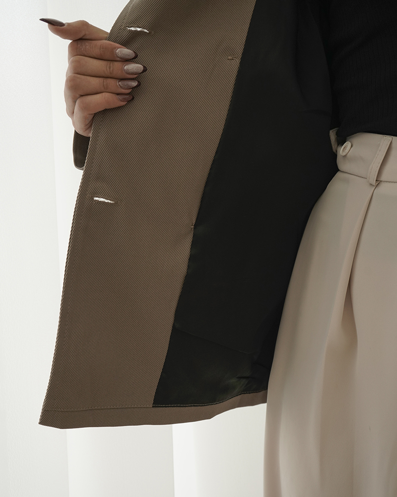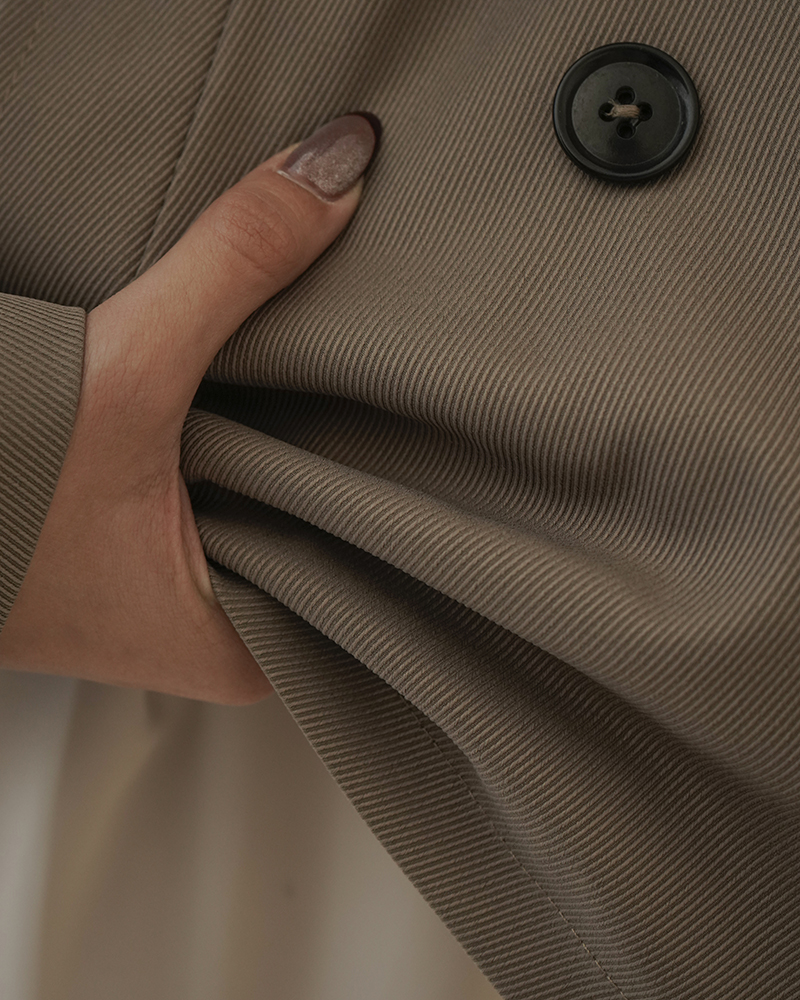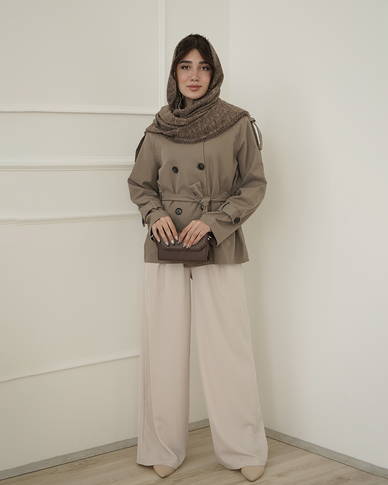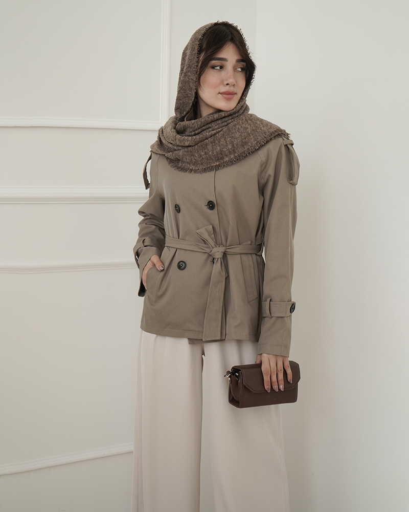 - توضیحات محصول: جنس ترنج کت، کجراه (آستردار) است. دکمه ها و جیب ها کاربردی می باشد. ترنج کت، دارای یک کمربند است.