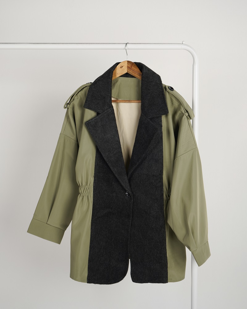 - توضیحات محصول: جنس ترنج کت ترکیبی از کتان تی سی و پشمی می باشد. ترنج کت یقه انگلیسی و کمر کشی می باشد. دکمه ی ترنج کت کاربردی بوده و ترنج کت بسیار راحت و کاربردی مناسب استفاده روزمره می باشد.ایراد جزئی از قبیل رنگ گرفتن برخی از قسمت های ترنج کت می باشد.