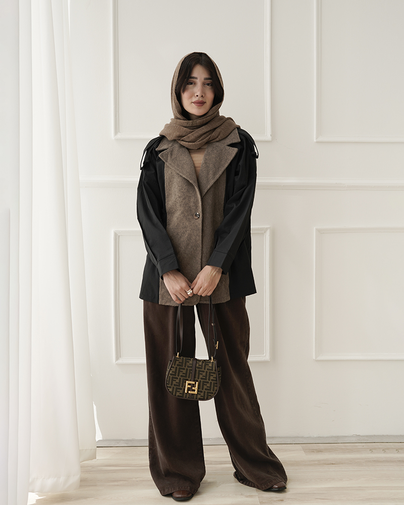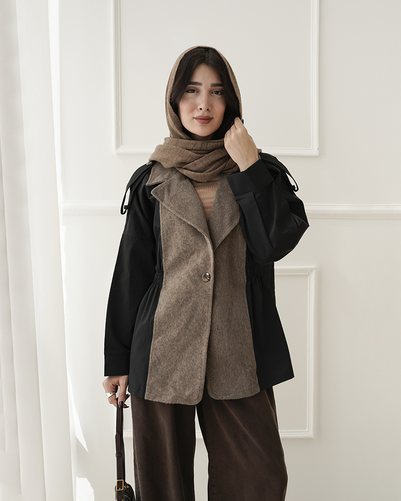 - توضیحات محصول: جنس ترنج کت، مموری کجراه و فوتر است. کت، یقه انگلیسی و کمر کش، می باشد. دکمه، کاربردی است.