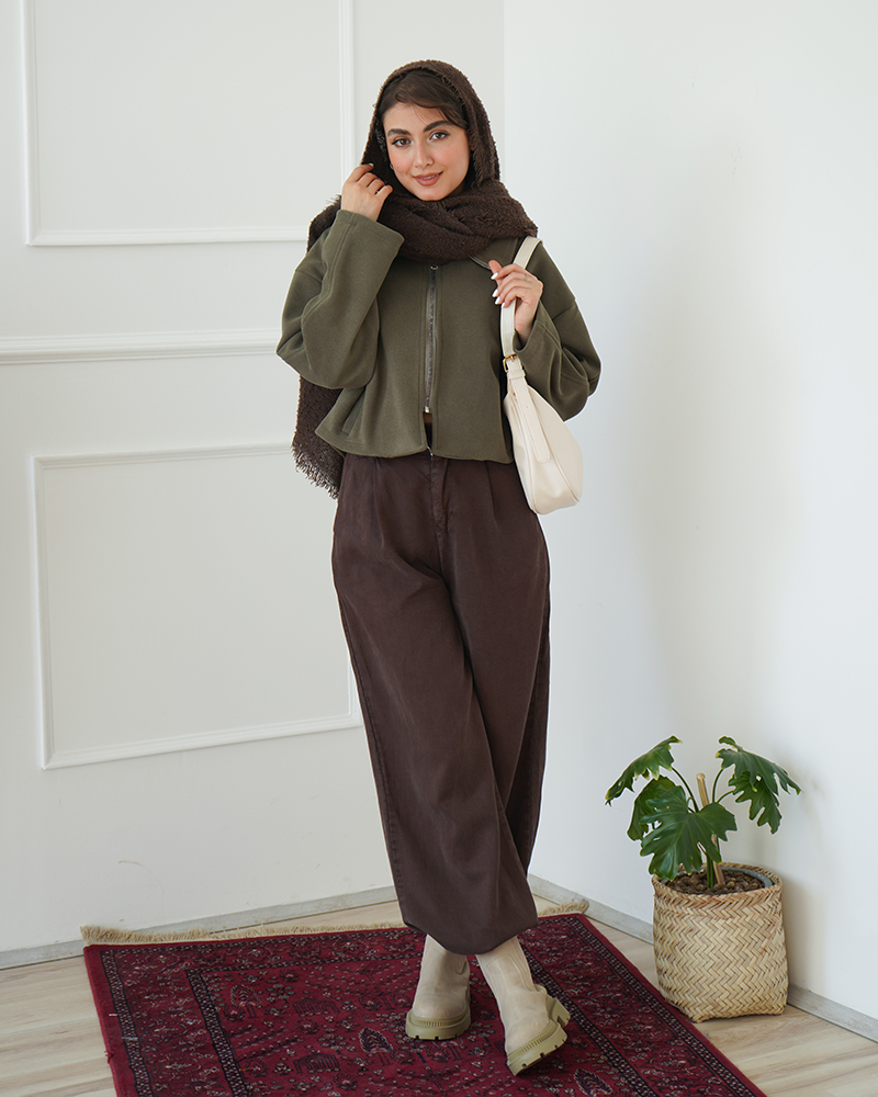 - توضیحات محصول: جنس ترنج کت، لامر اویشو است. طرح های روی لباس، گلدوزی می باشد. ترنج کت، جلو زیپی و آستردار است. این محصول دارای دو جیب کاربردی می باشد.