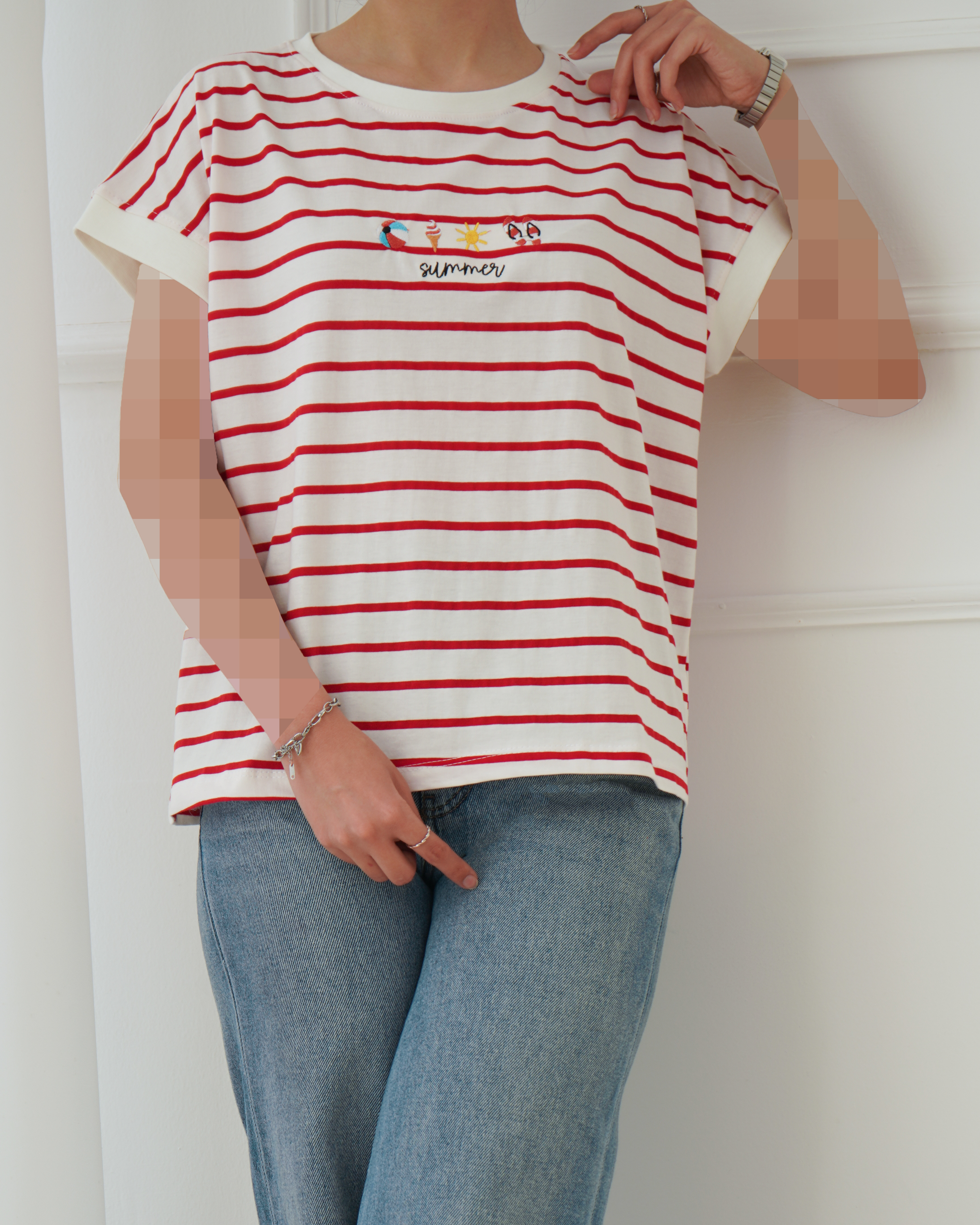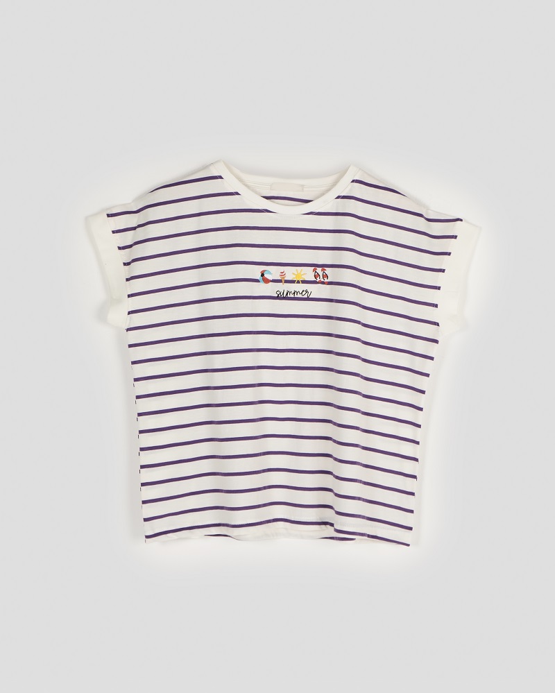 - توضیحات محصول: جنس تیشرت نخ و پنبه می باشد. تیشرت یقه گرد و آستین کوتاه می باشد. طرح های روی تیشرت گلدوزی شده است. این محصول بسیار نرم و لطیف مناسب استفاده روزمره می باشد.