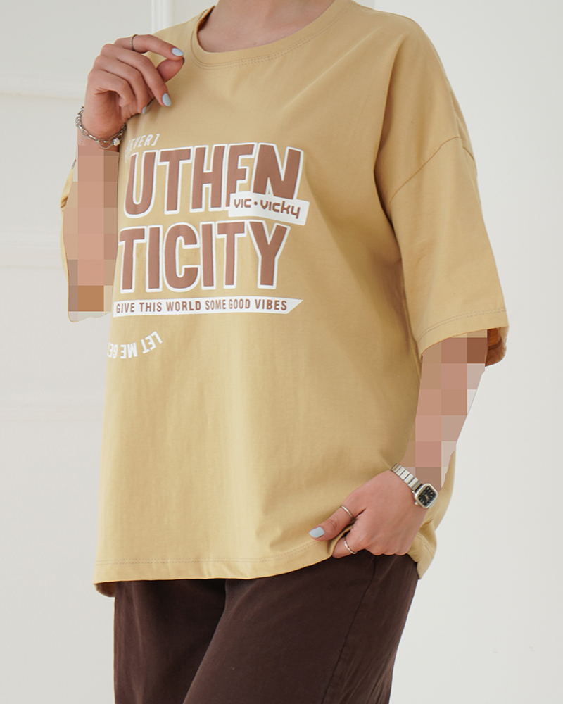 - توضیحات محصول: جنس تیشرت نخ و پنبه می باشد. تیشرت یقه گرد و آستین کوتاه می باشد. طرح های روی تیشرت چاپی است. تنخور تیشرت باکسی است. این محصول بسیار نرم و لطیف و خنک همراه با کشسانی مناسب استفاده روزمره می باشد.
