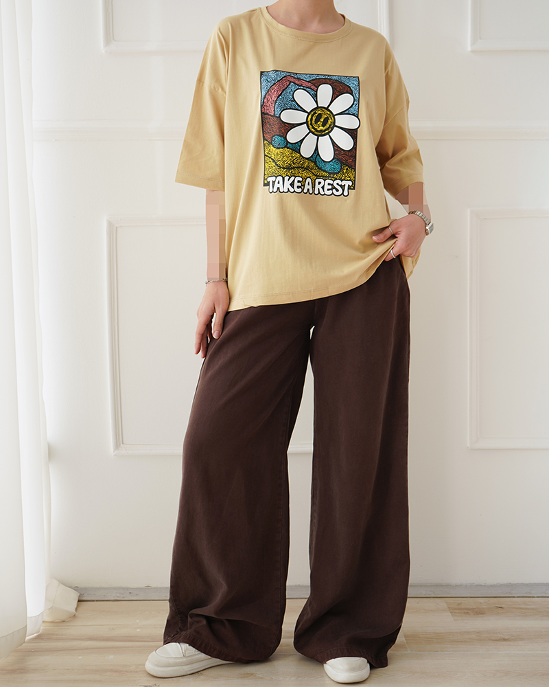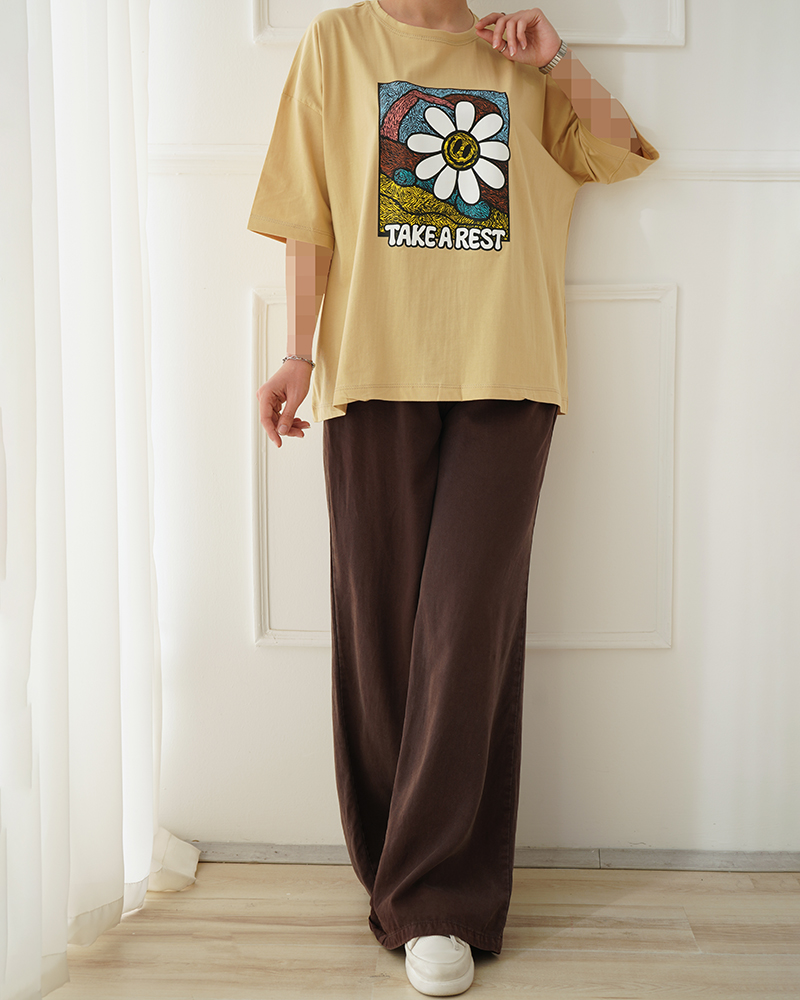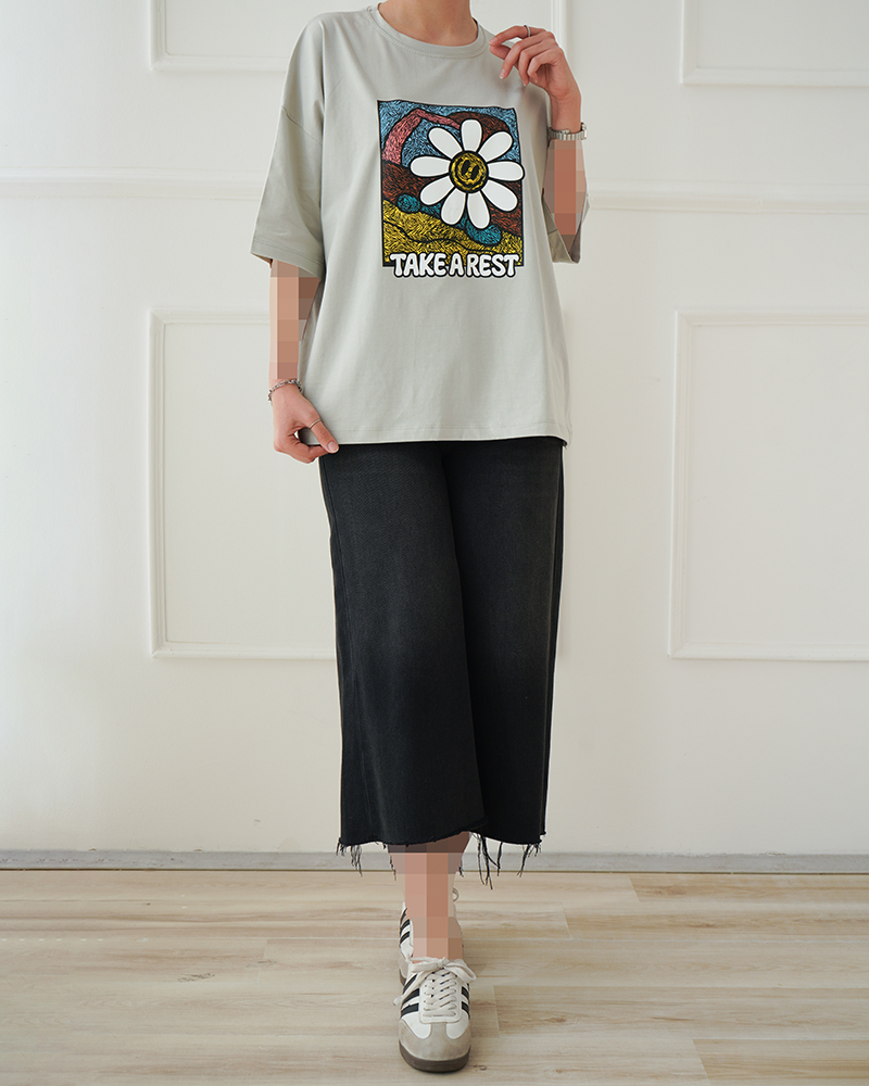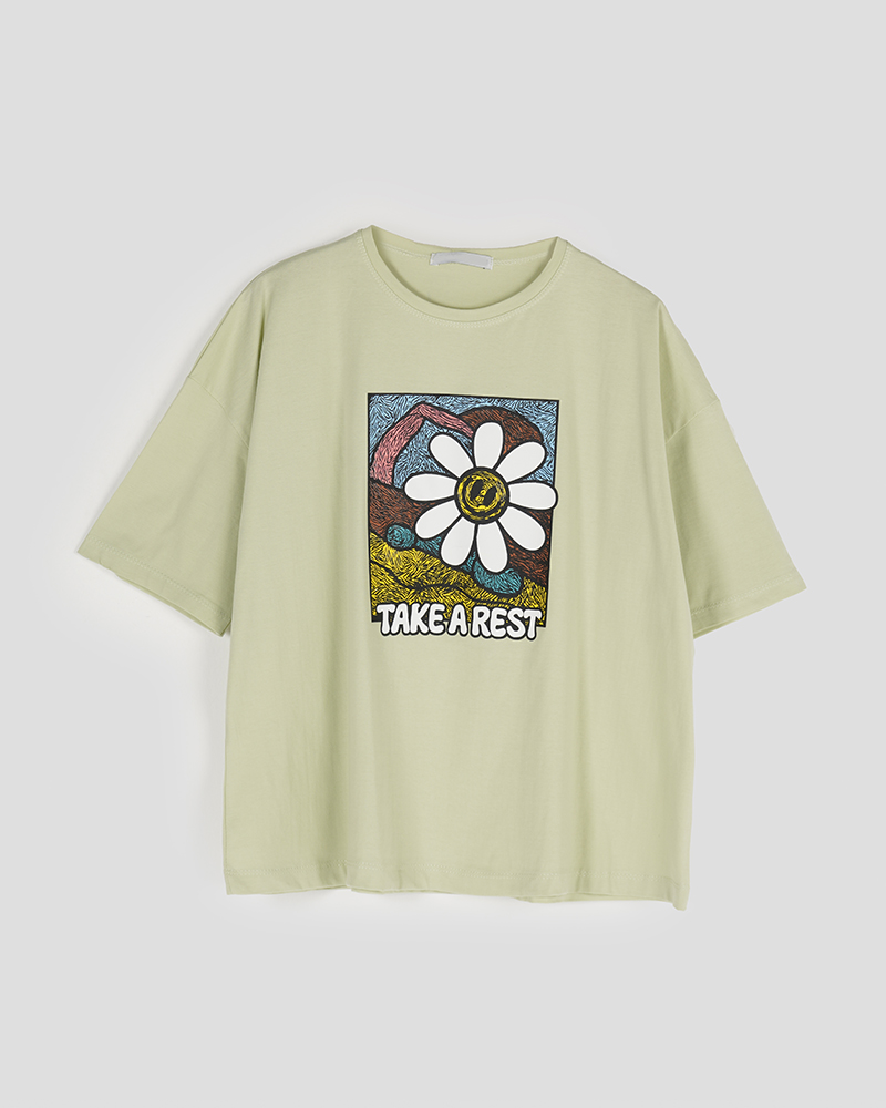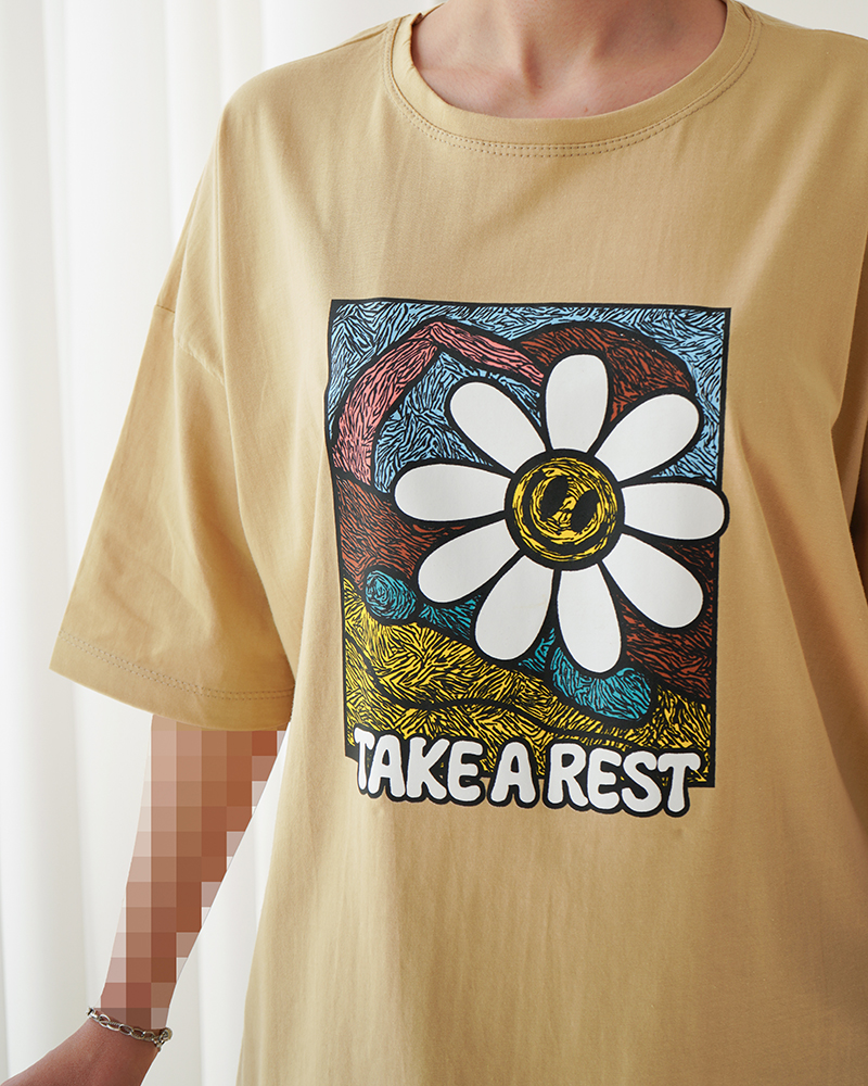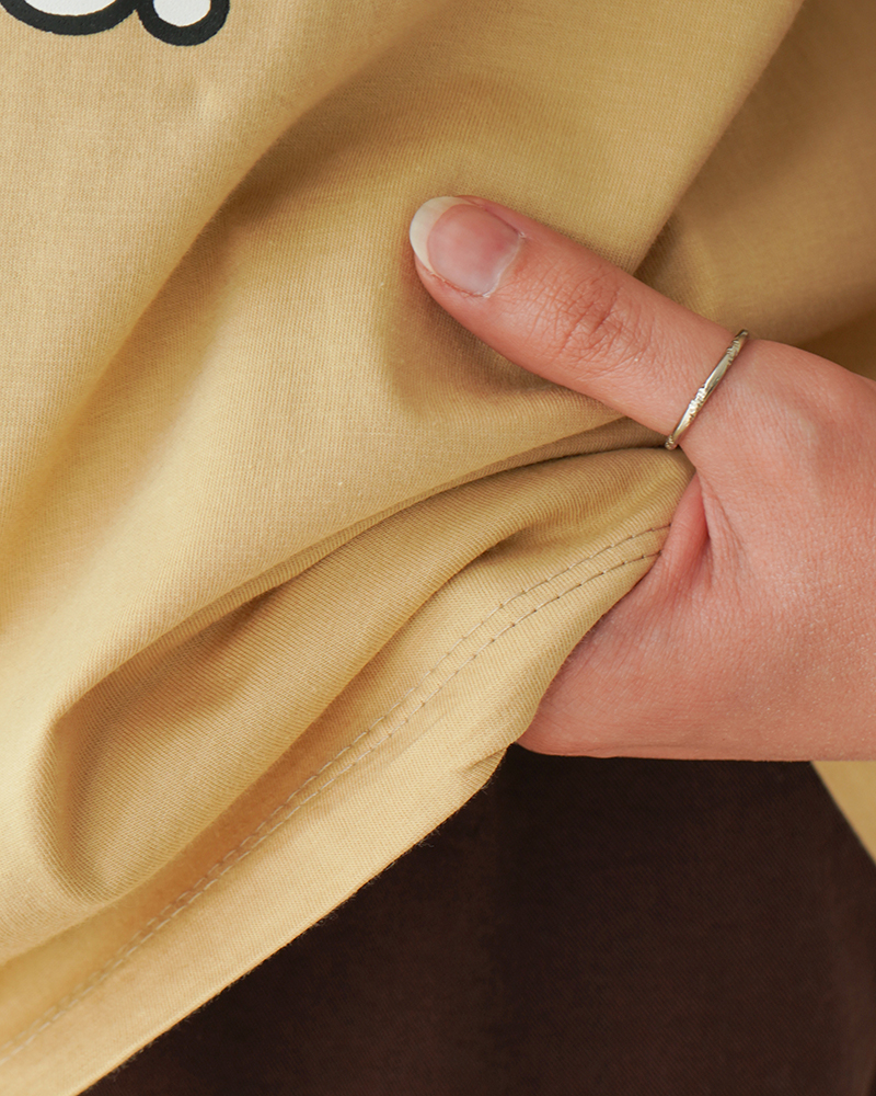 - توضیحات محصول: جنس تیشرت نخ و پنبه می باشد. تیشرت یقه گرد و آستین کوتاه می باشد. طرح های روی تیشرت چاپی است. تنخور تیشرت باکسی است. این محصول بسیار نرم و لطیف و خنک همراه با کشسانی مناسب استفاده روزمره می باشد.