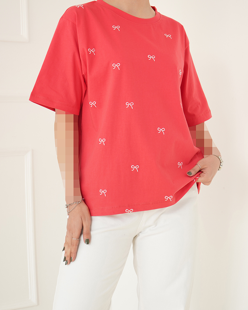 - توضیحات محصول: جنس تیشرت نخ پنبه می باشد. تیشرت یقه گرد و طرح های روی تیشرت، گلدوزی هستند. تیشرت بسیار خنک و راحت مناسب استفاده روزمره در منزل ،مهمانی ،دورهمی ،باشگاه و ... است.