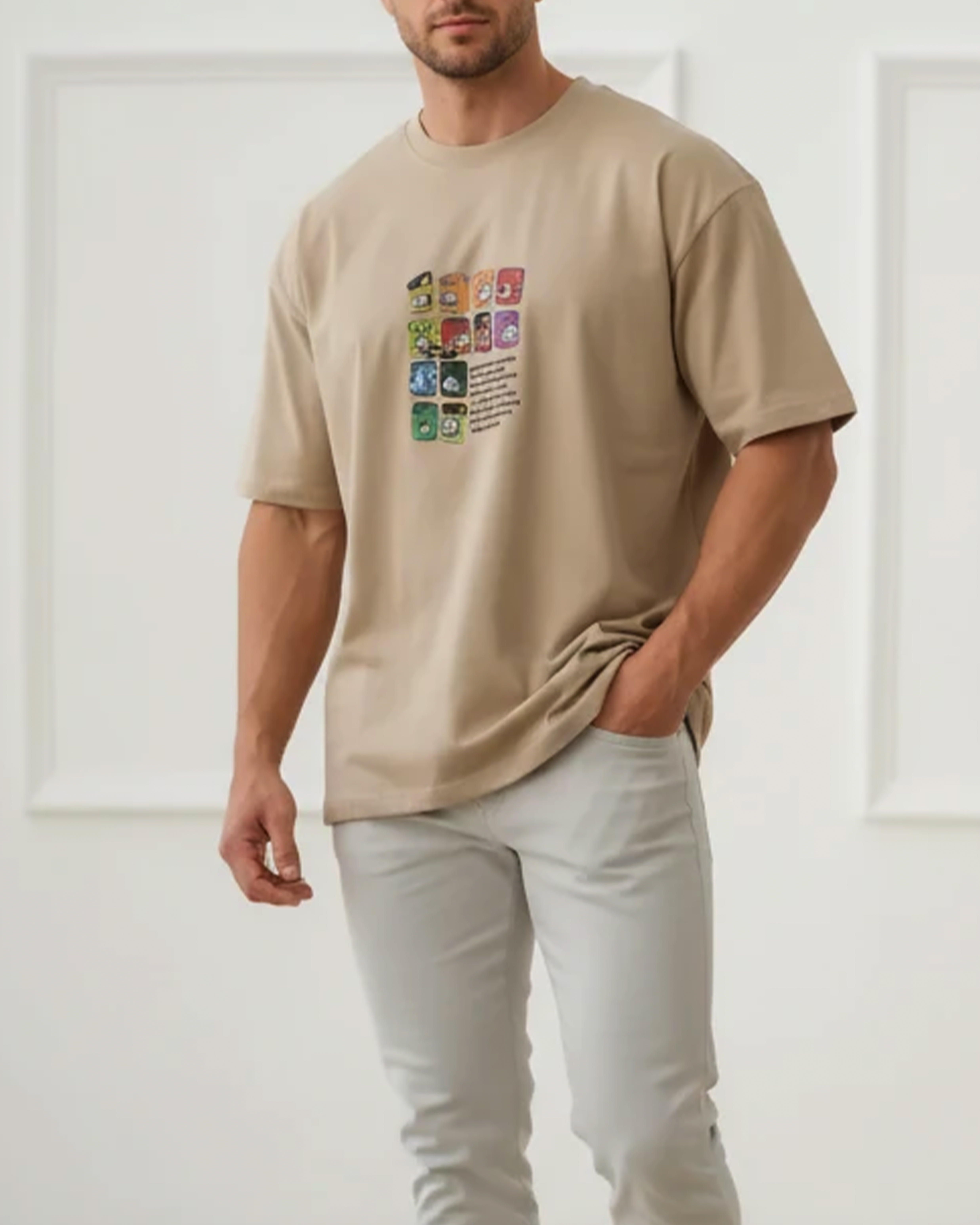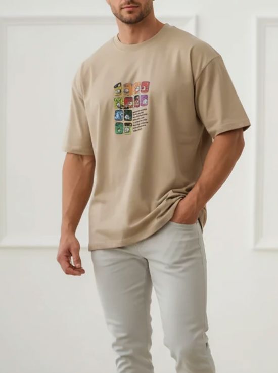 - توضیحات محصول: جنس تیشرت، پنبه ماکان می باشد. تیشرت یقه گرد است. طرح های روی تیشرت، چاپی هستند. این محصول بسیار راحت و با کیفیت مناسب استفاده روزمره است.
