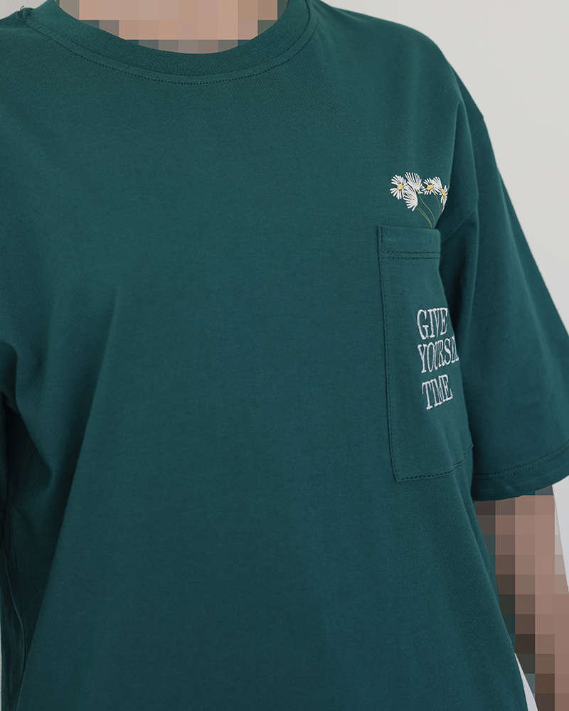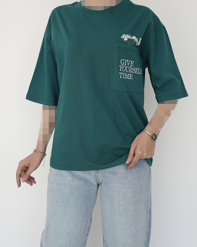 - توضیحات محصول: جنس تیشرت نخ و پنبه می باشد. تیشرت یقه گرد است. طرح های روی تیشرت ترکیبی از چاپ و گلدوزی می باشد. تیشرت بسیار خنک و راحت مناسب استفاده روزمره در منزل ،مهمانی ،دورهمی ،باشگاه و ... است. تک جیب تیشرت کاربردی است.