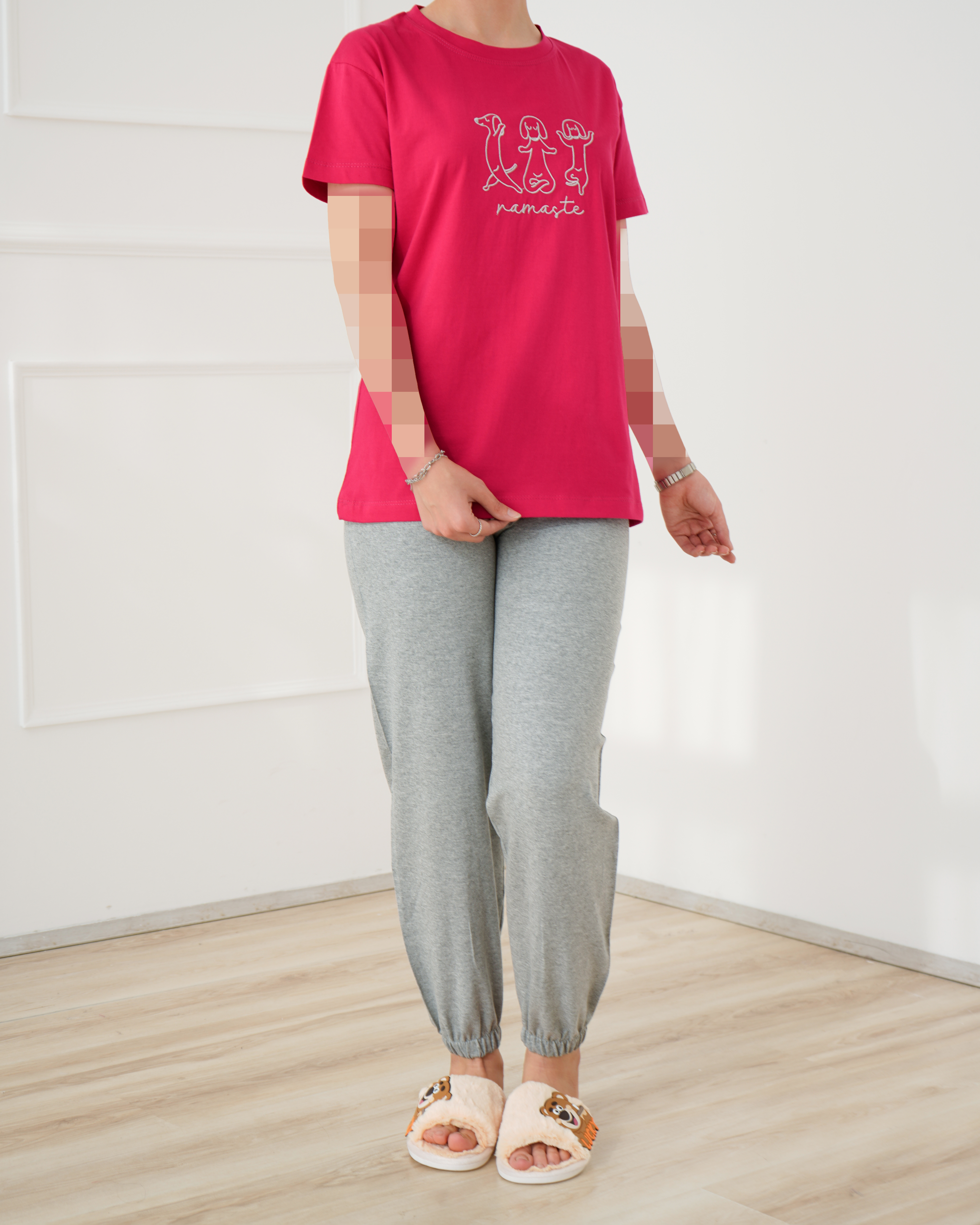 - توضیحات محصول: جنس تیشرت نخ و پنبه و جنس شلوار پنبه گلکسی می باشد. تیشرت یقه گرد و آستین کوتاه بوده و طرح های روی تیشرت گلدوزی شده می باشد. کمر شلوار تماما کشی بوده و بند دور کمر شلوار کاربردی می باشد.شلوار این محصول دمپا کشی(جاگر) می باشد.