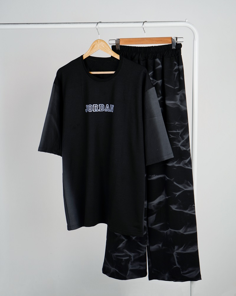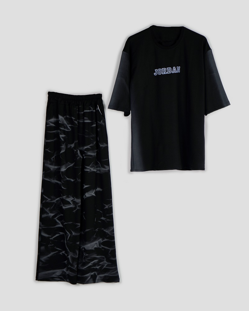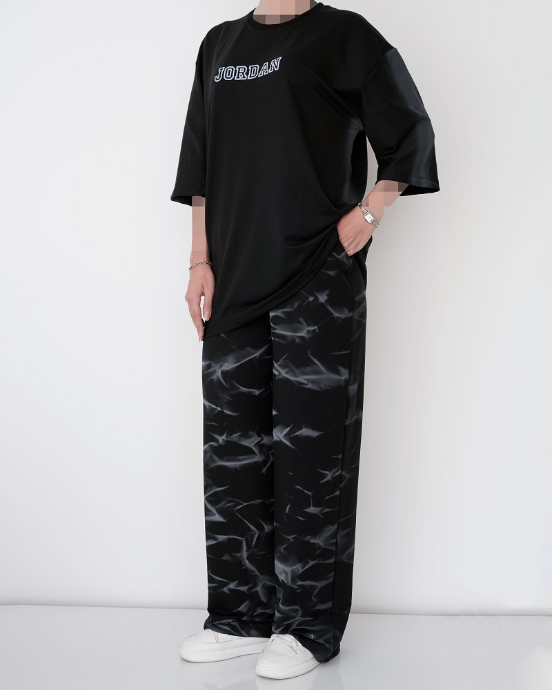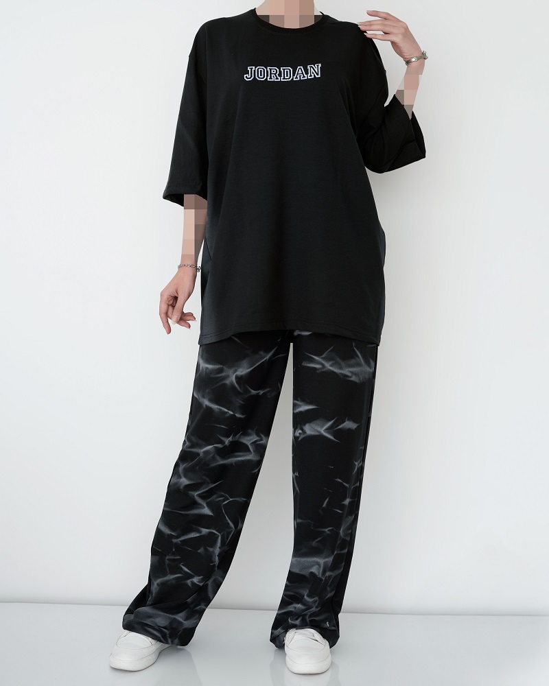 - توضیحات محصول: جنس ست، گلکسی است. تیشرت یقه گرد و نوشته روی تیشرت، چاپی می باشد. کمر شلوار، تماما کشی و دارای دو جیب کاربردی است.