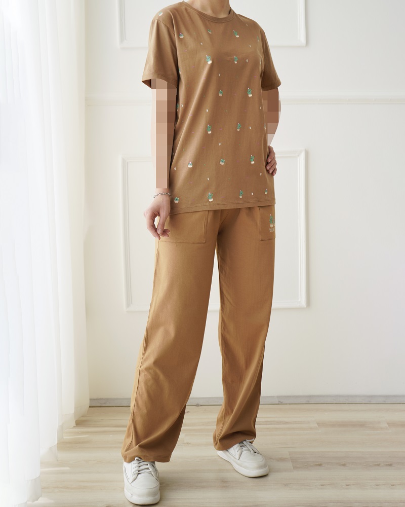 - توضیحات محصول: جنس تیشرت نخ و پنبه می باشد. تیشرت یقه گرد و طرح های روی ست چاپی می باشد. کمر شلوار تماما کشی است.