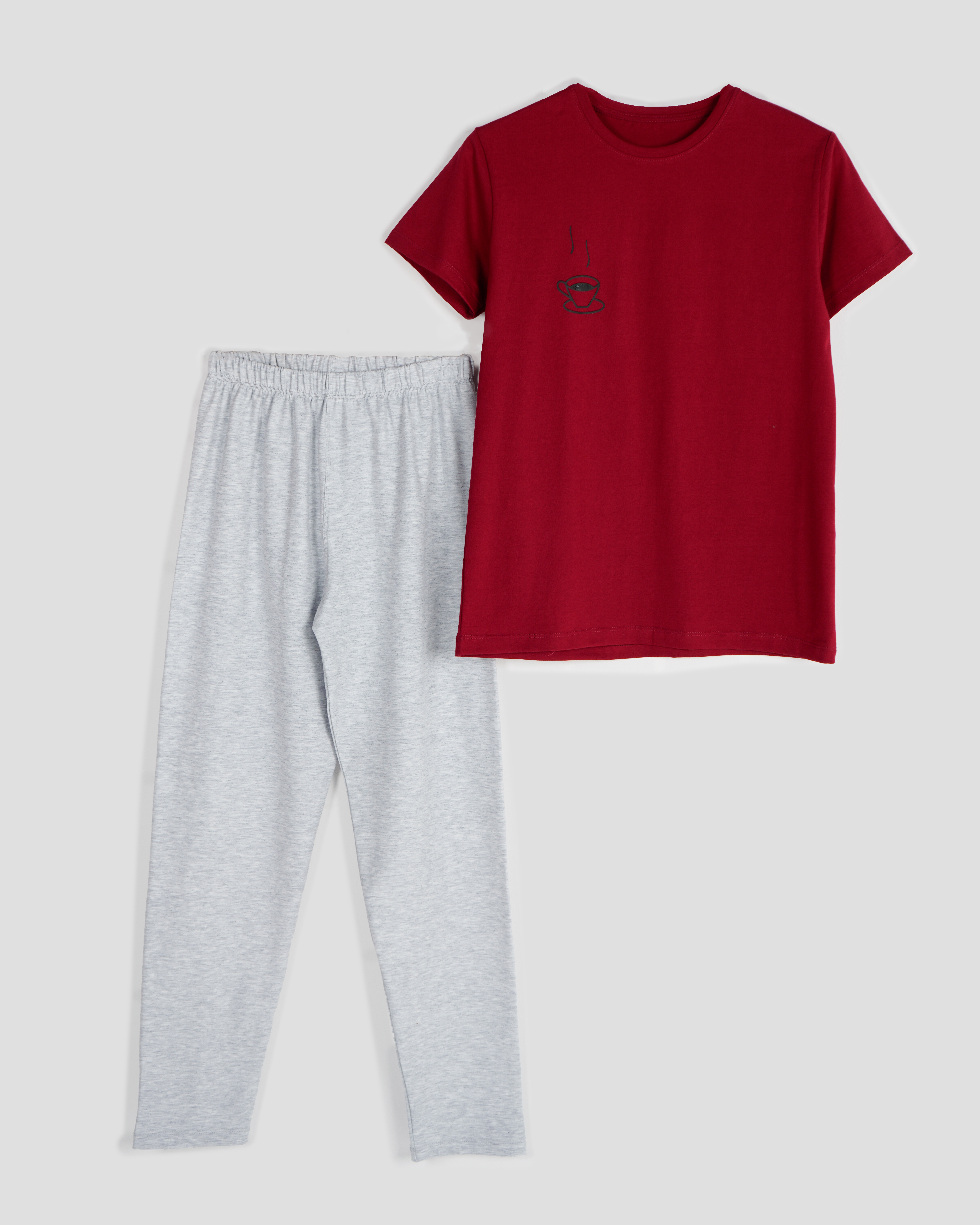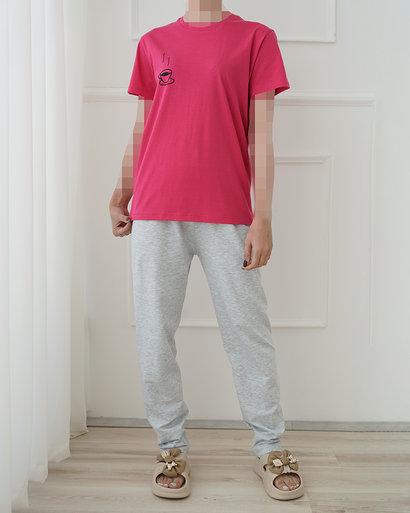 - توضیحات محصول: جنس تیشرت نخ و پنبه و جنس شلوار پنبه گلکسی می باشد. تیشرت یقه گرد بوده و نوشته های روی تیشرت چاپی می باشد. کمر شلوار تماما کشی است.