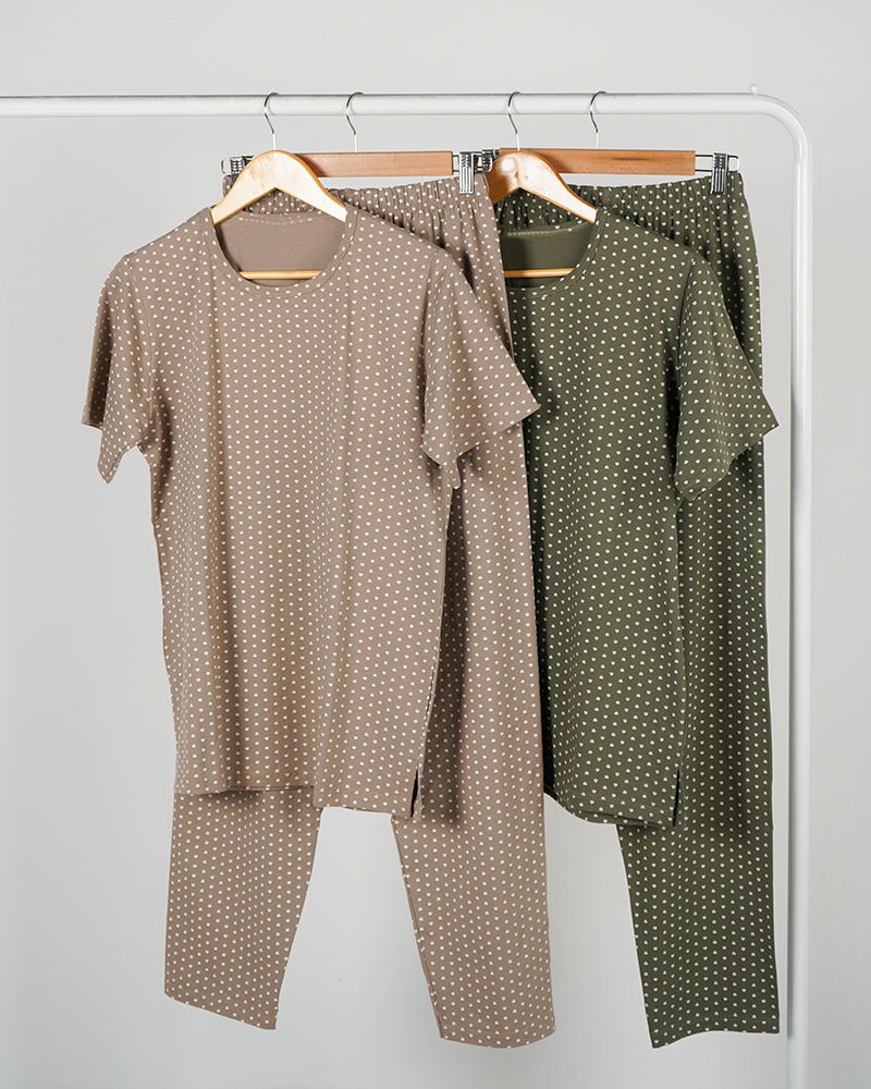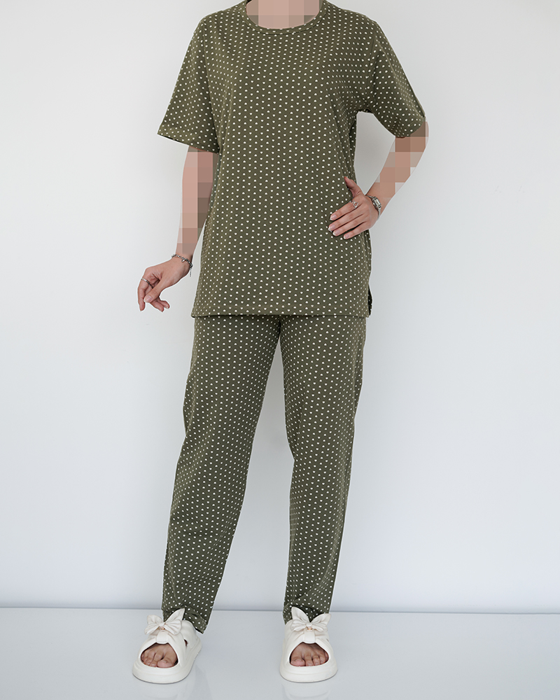 - توضیحات محصول: جنس تیشرت شلوار نخ و پنبه چاپی می باشد. طرح های روی این ست چاپی می باشد. تیشرت یقه گرد بوده و دورکمر شلوار تماما کشی است. بند دور کمر نما می باشد. این محصول ضمن کشسانی بالا مناسب استفاده روزمره می باشد.