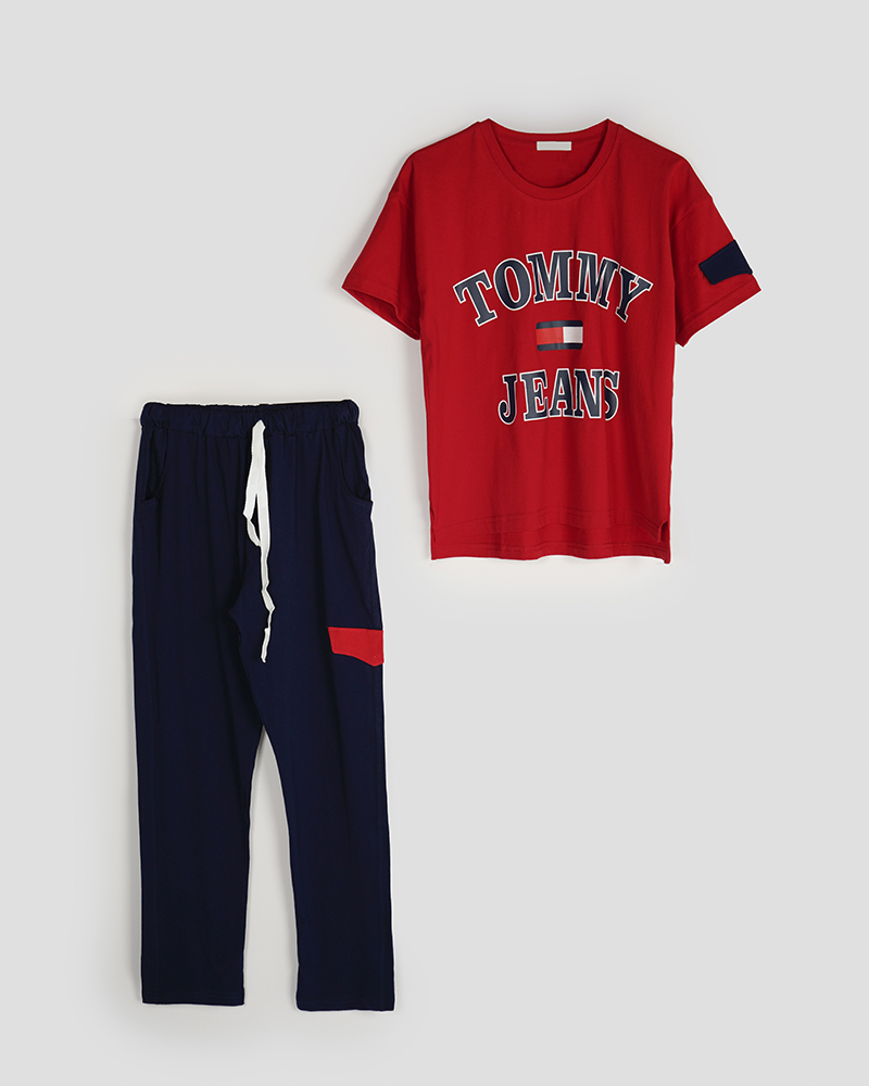 - توضیحات محصول: جنس تیشرت و شلوار نخ و پنبه می باشد. تیشرت یقه گرد و آستین کوتاه می باشد. طرح های روی ست چاپی هستند. کمر شلوار تماما کشی بوده و بند دور کمر کاربردی است.