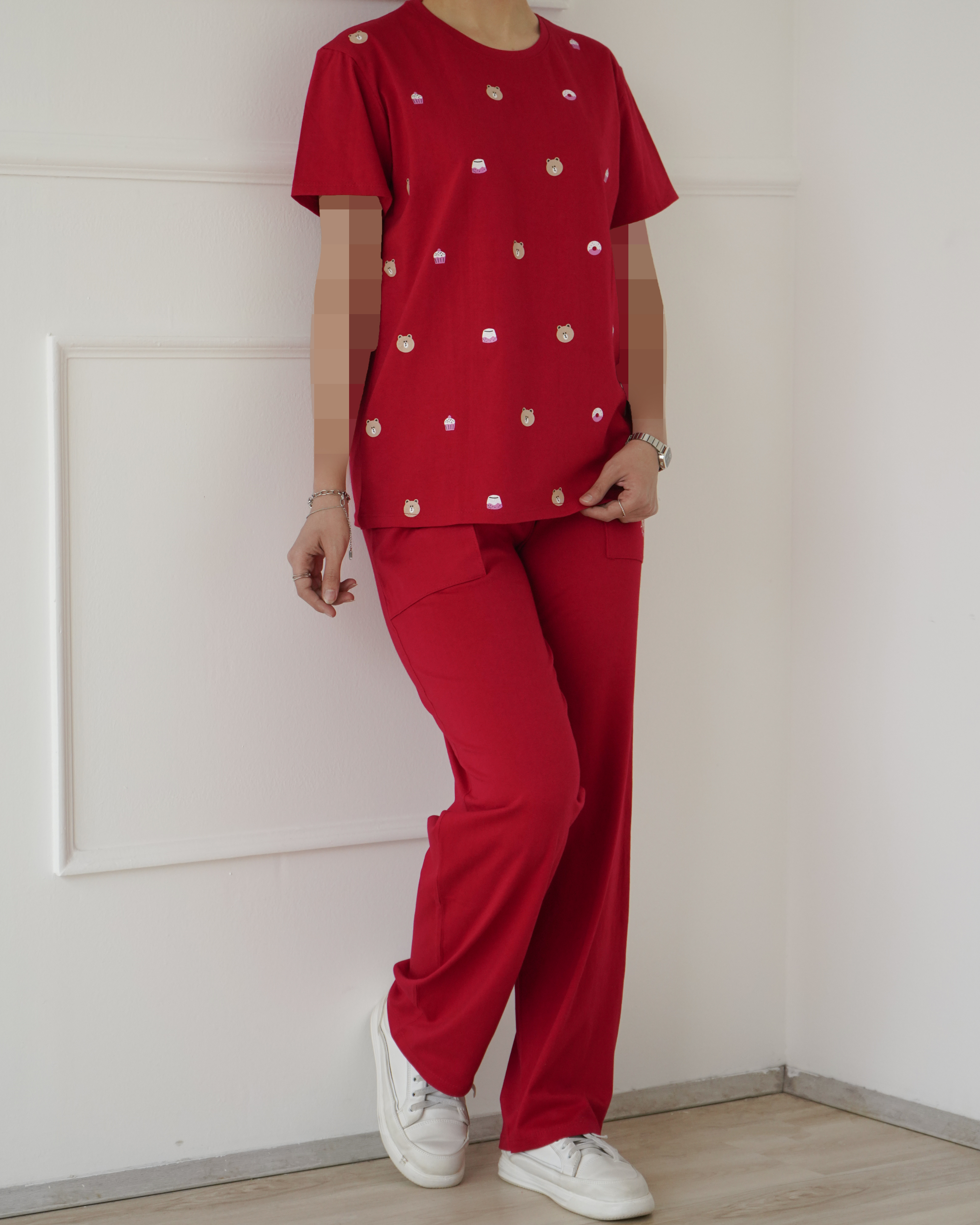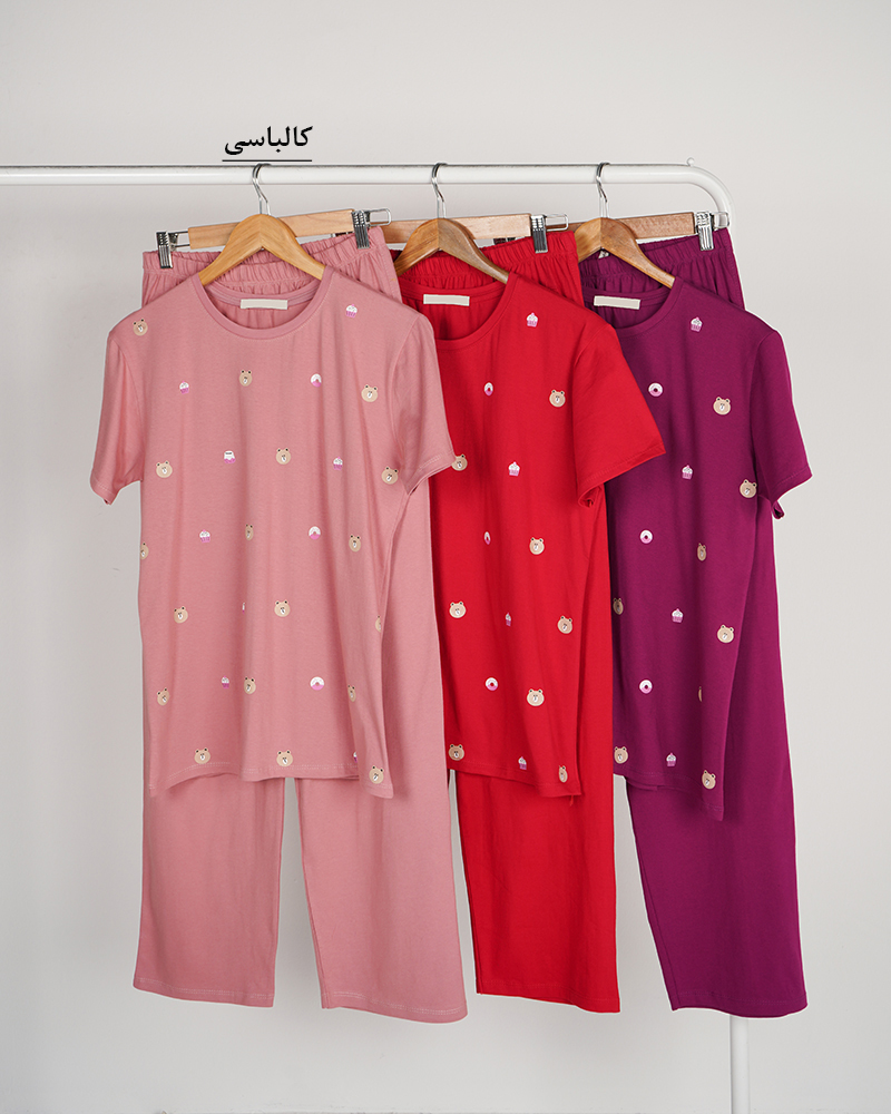- توضیحات محصول: جنس تیشرت نخ و پنبه می باشد. تیشرت یقه گرد و طرح های روی ست چاپی می باشد. کمر شلوار تماما کشی است.