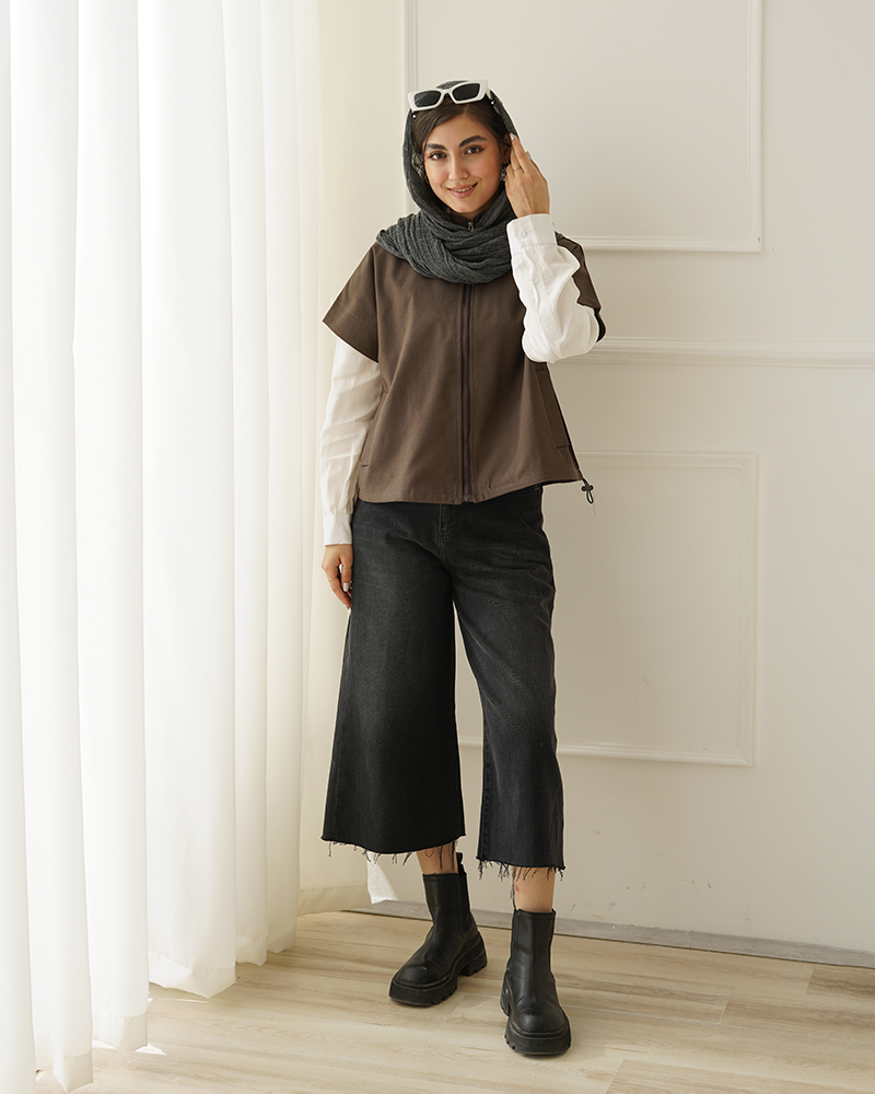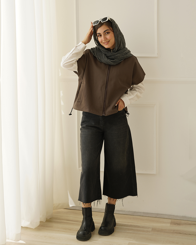 - توضیحات محصول: جنس وست کتان می باشد.وست جلو زیپی و پایین گتر دار می باشد. این محصول یقه ایستاده و فاقد آستر می باشد.