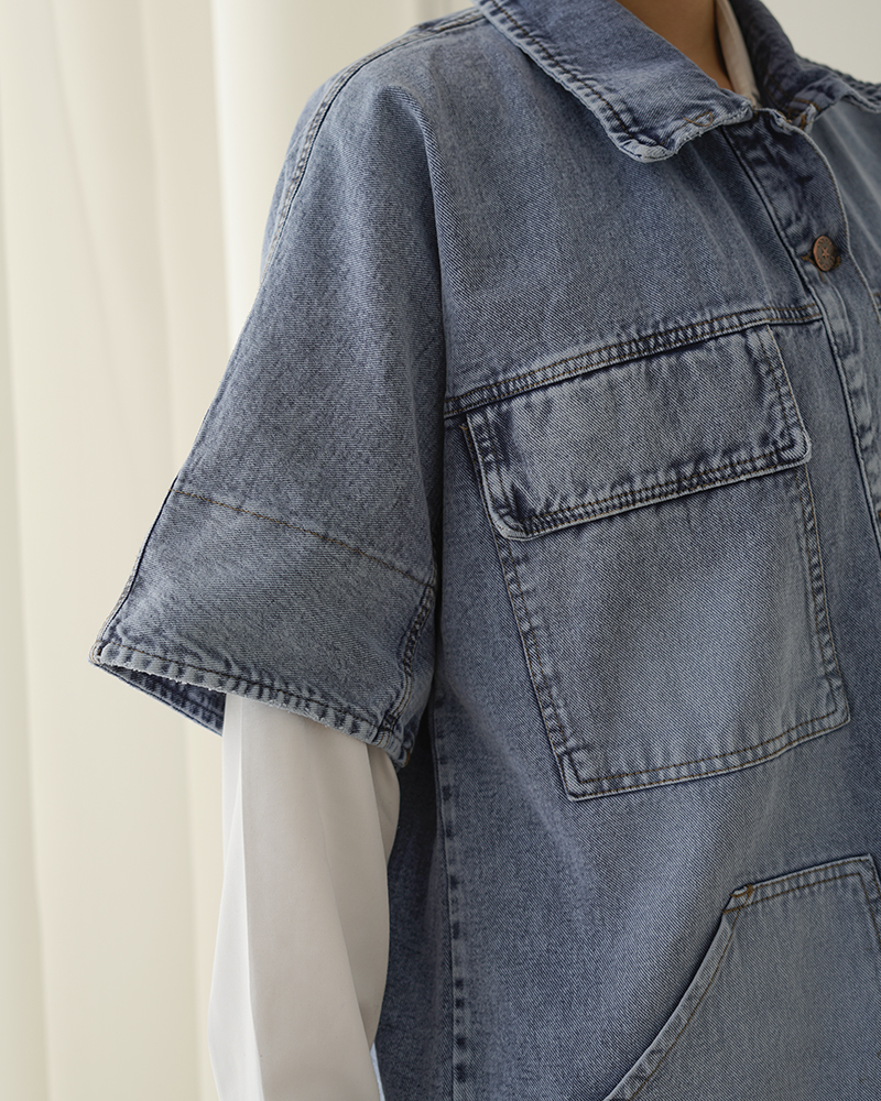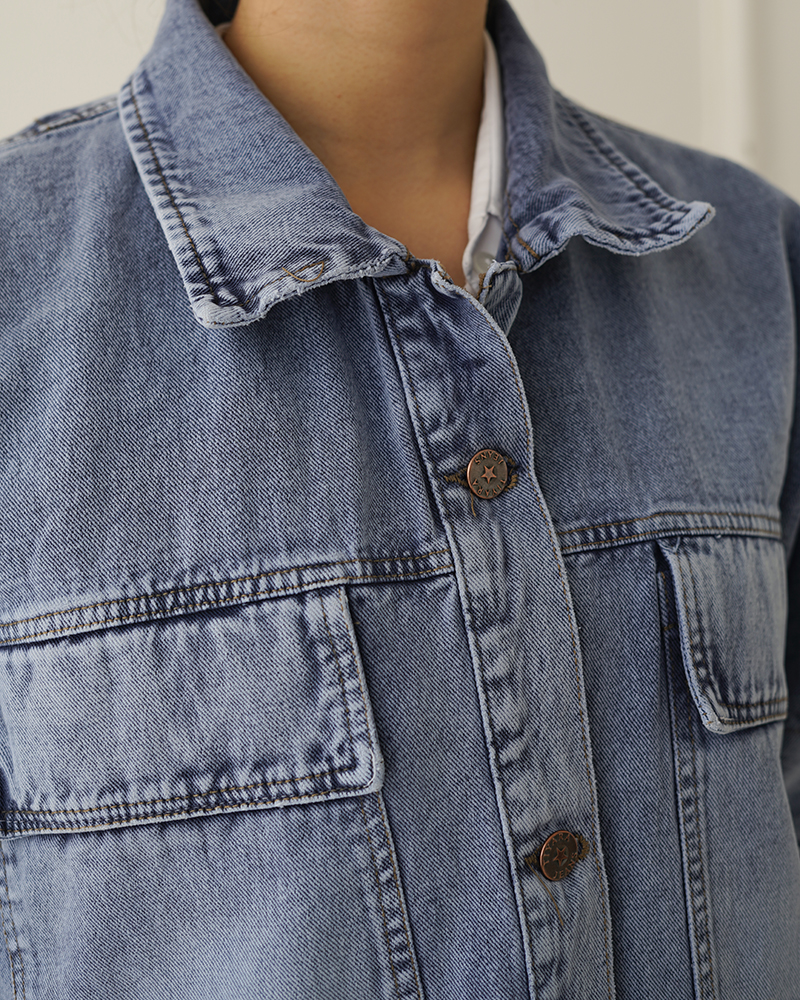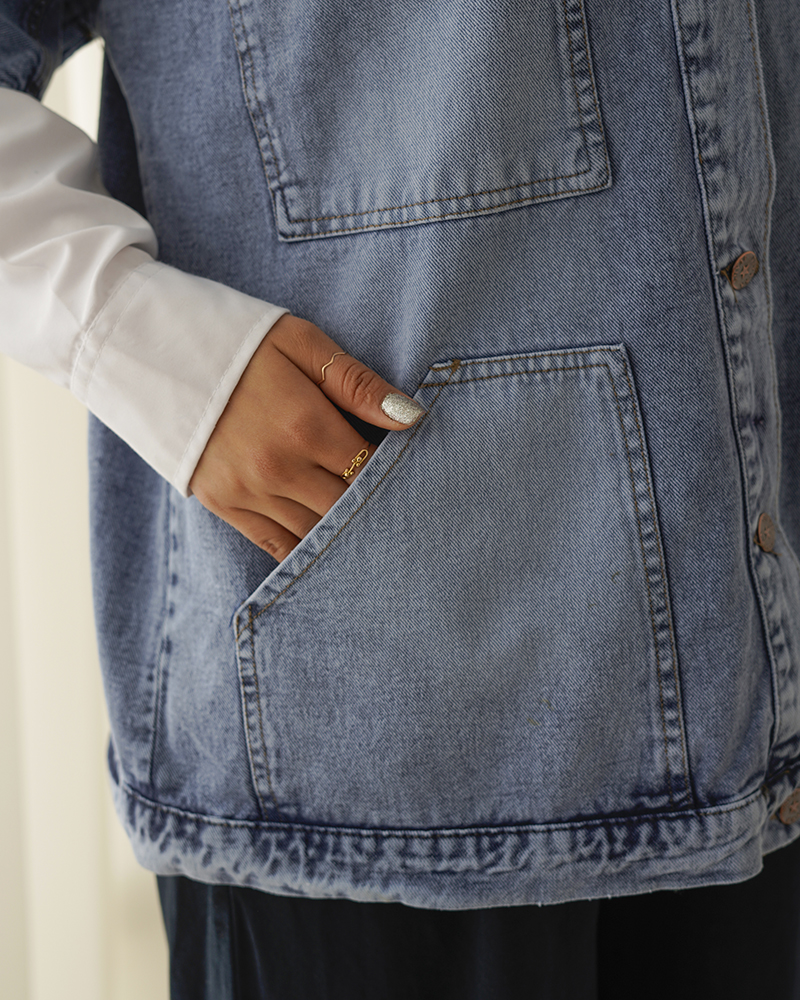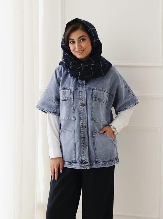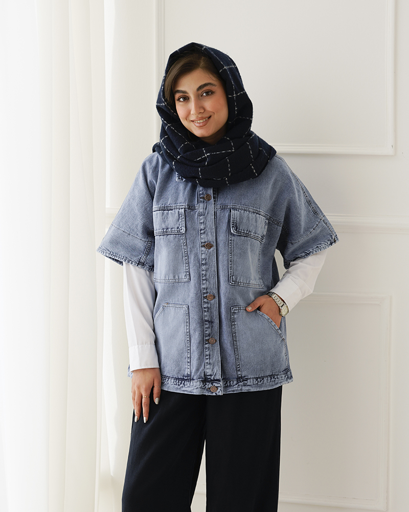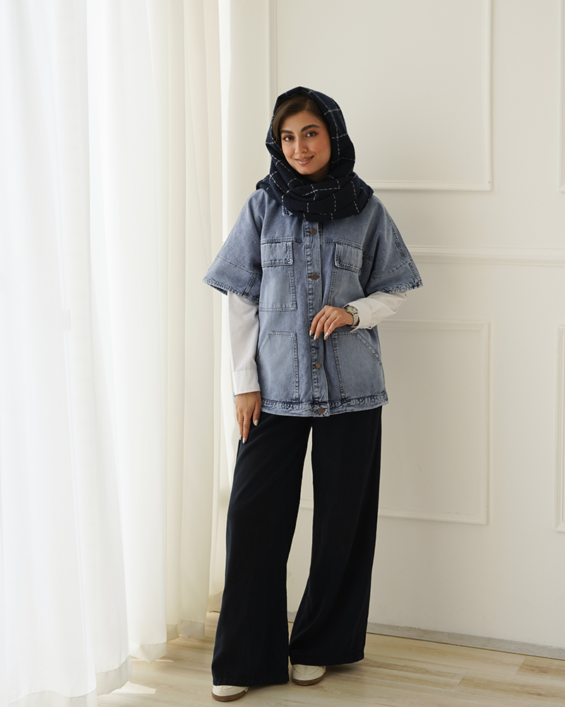 - توضیحات محصول: جنس وست، جین است. وست یقه مردانه و دارای دکمه های کاربردی می باشد.