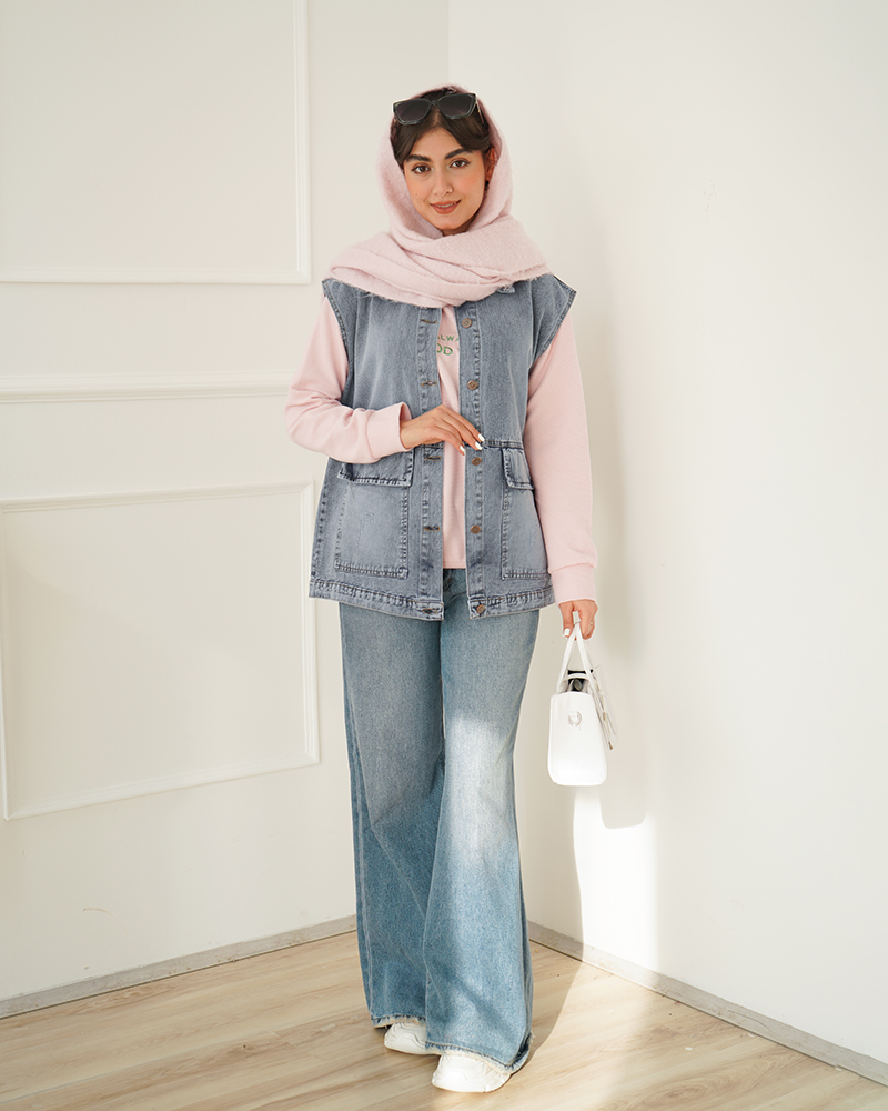 - توضیحات محصول: جنس وست جین می باشد. وست آستین حلقه ای و جیب ها نما هستند. این محصول یقه مردانه بوده و دارای دکمه های کاربردی است. وست بسیار با کیفیت مناسب استفاده روزمره می باشد.