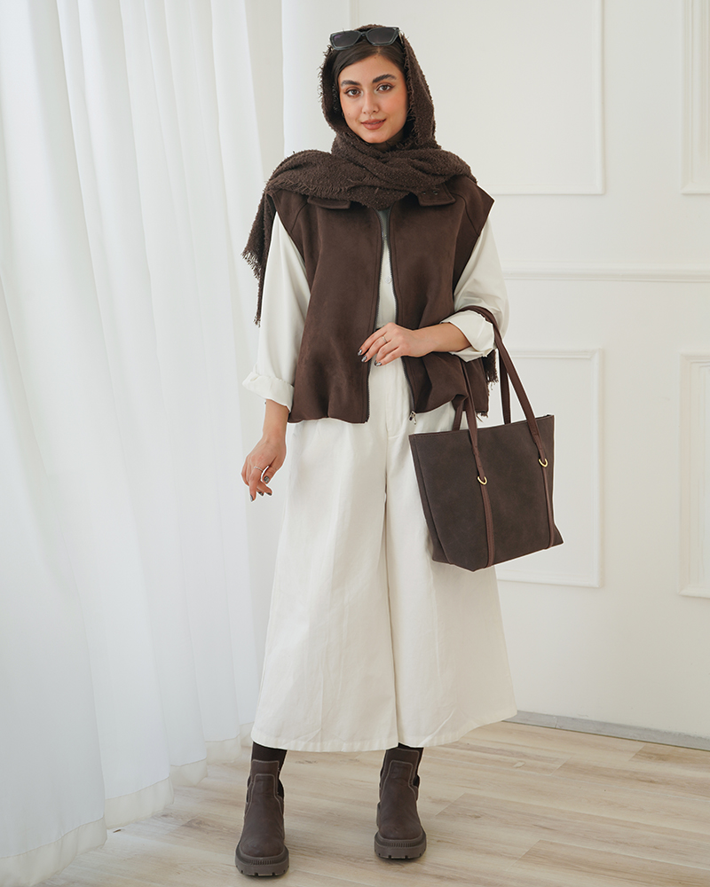 - توضیحات محصول: جنس وست سوئیت می باشد. وست یقه مردانه و آستر دار می باشد. این محصول جلو زیپی است. دور کمر وست کشی است.