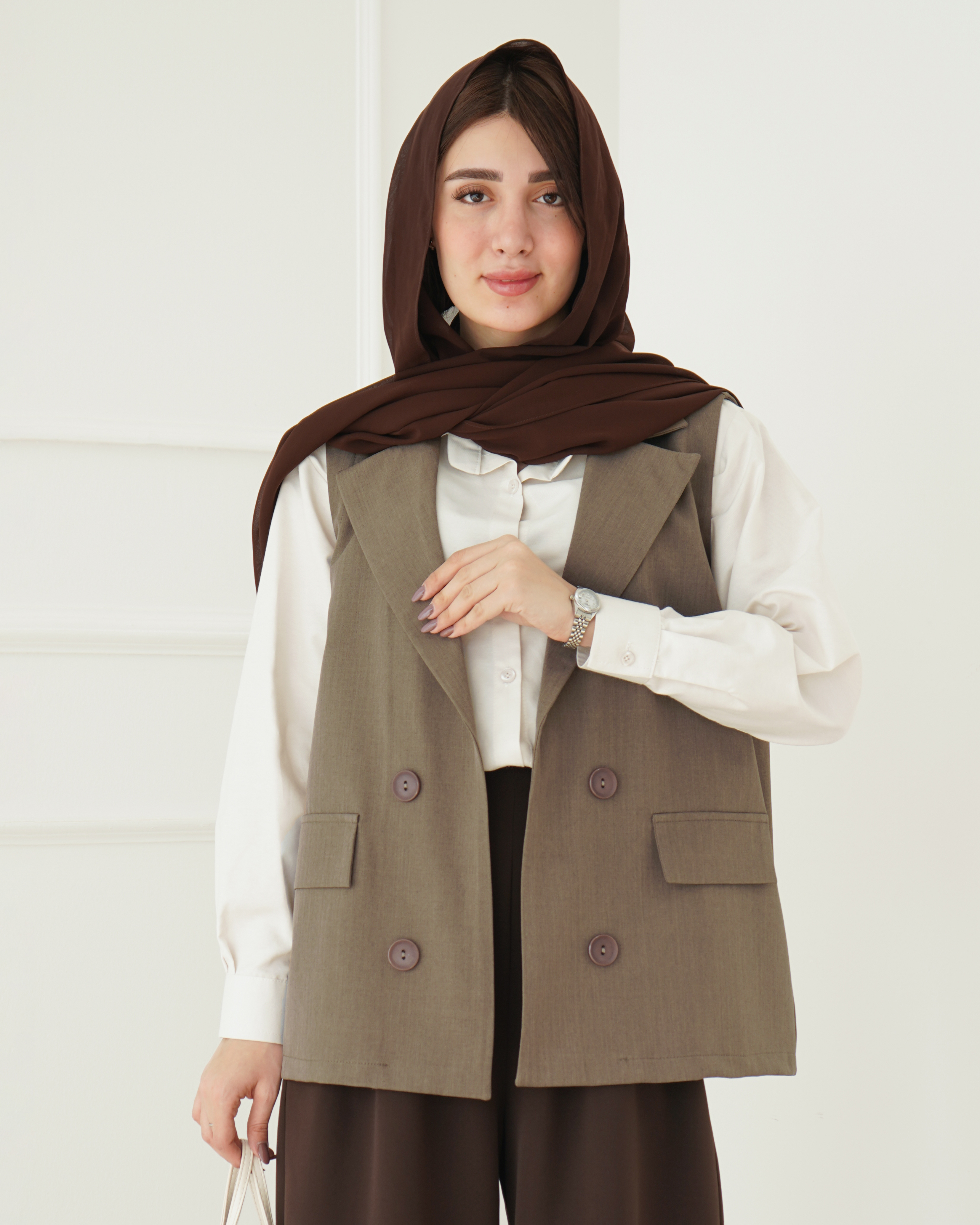 - توضیحات محصول: جنس وست جناقی می باشد. وست یقه انگلیسی و قسمت جلو وست جهت ایستایی بهتر آستر کشی شده است. دکمه ها و جیب های وست نما هستند.