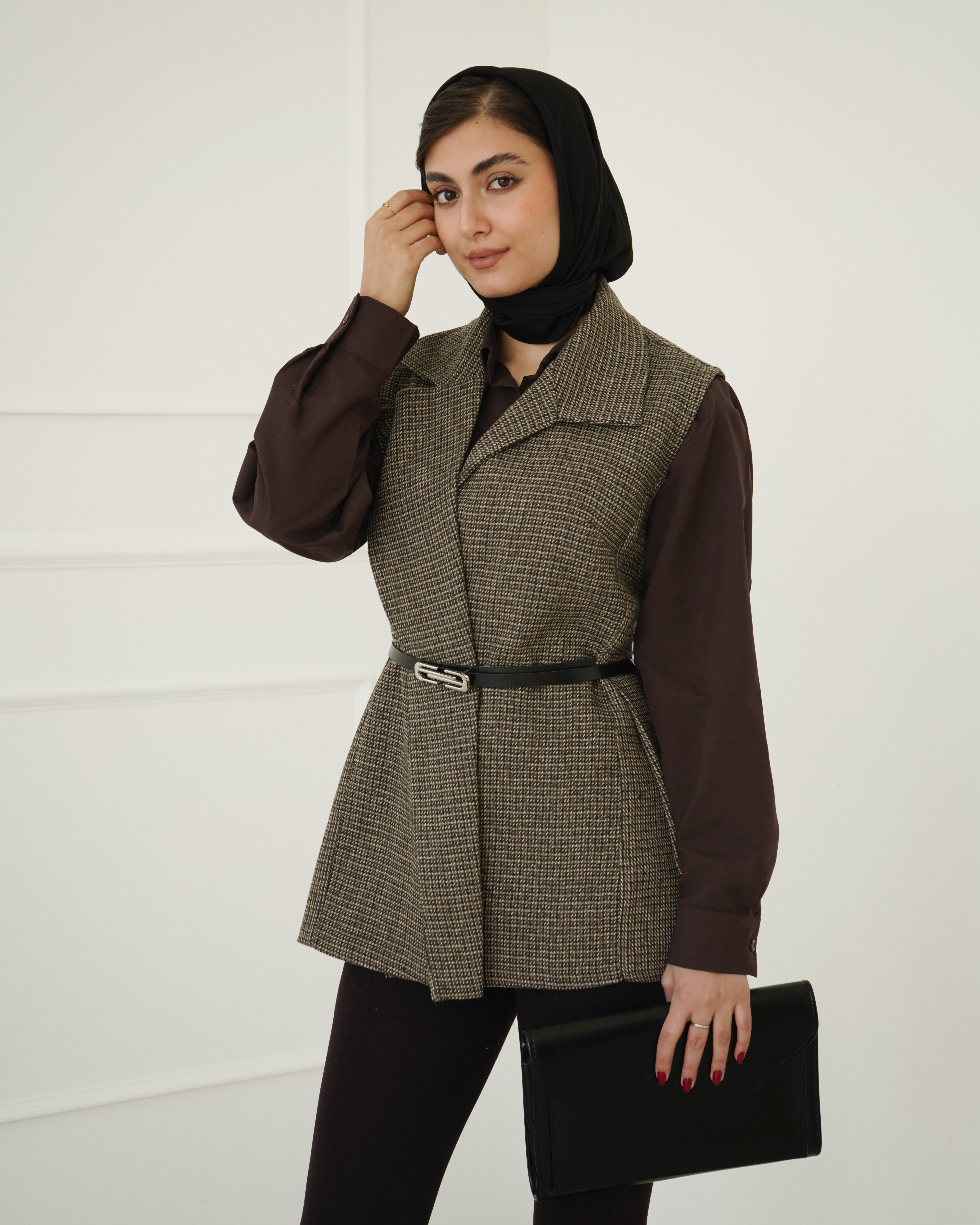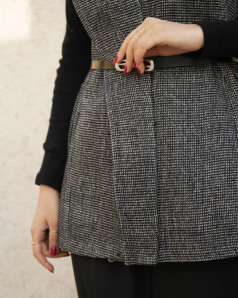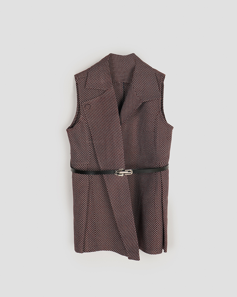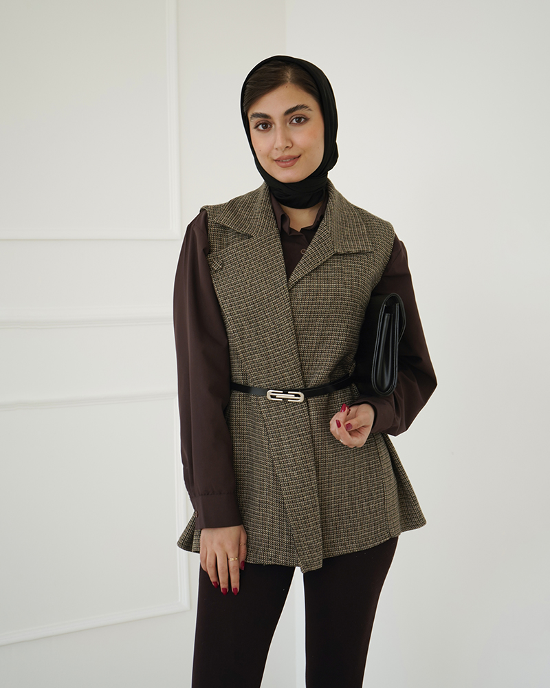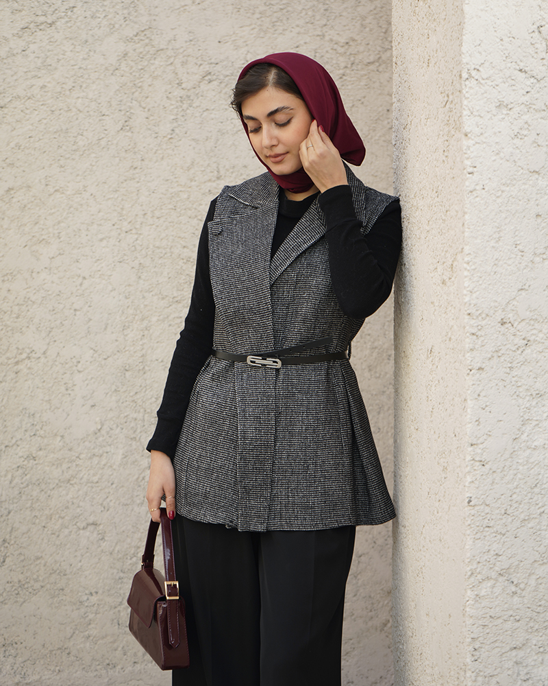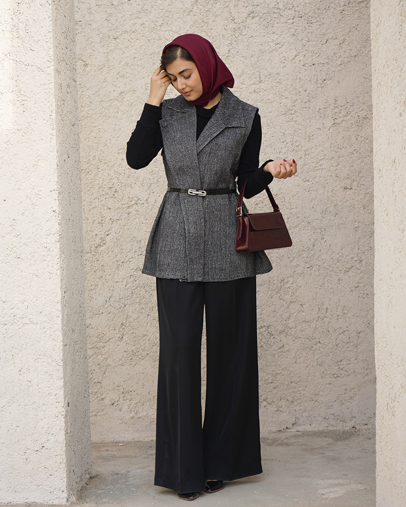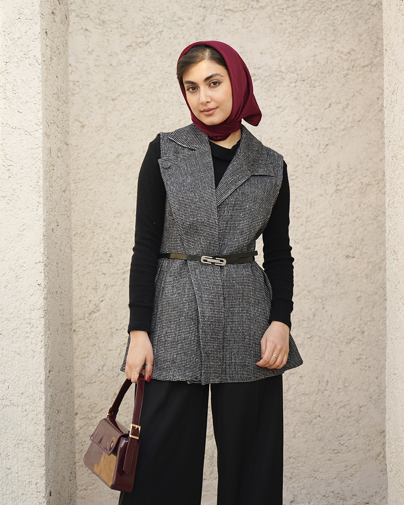 - توضیحات محصول: جنس وست شنل می باشد. وست یقه انگلیسی و دارای یک دکمه مخفی می باشد. این محصول دارای یکم کمربند چرم به ابعاد 106*1 می باشد.
