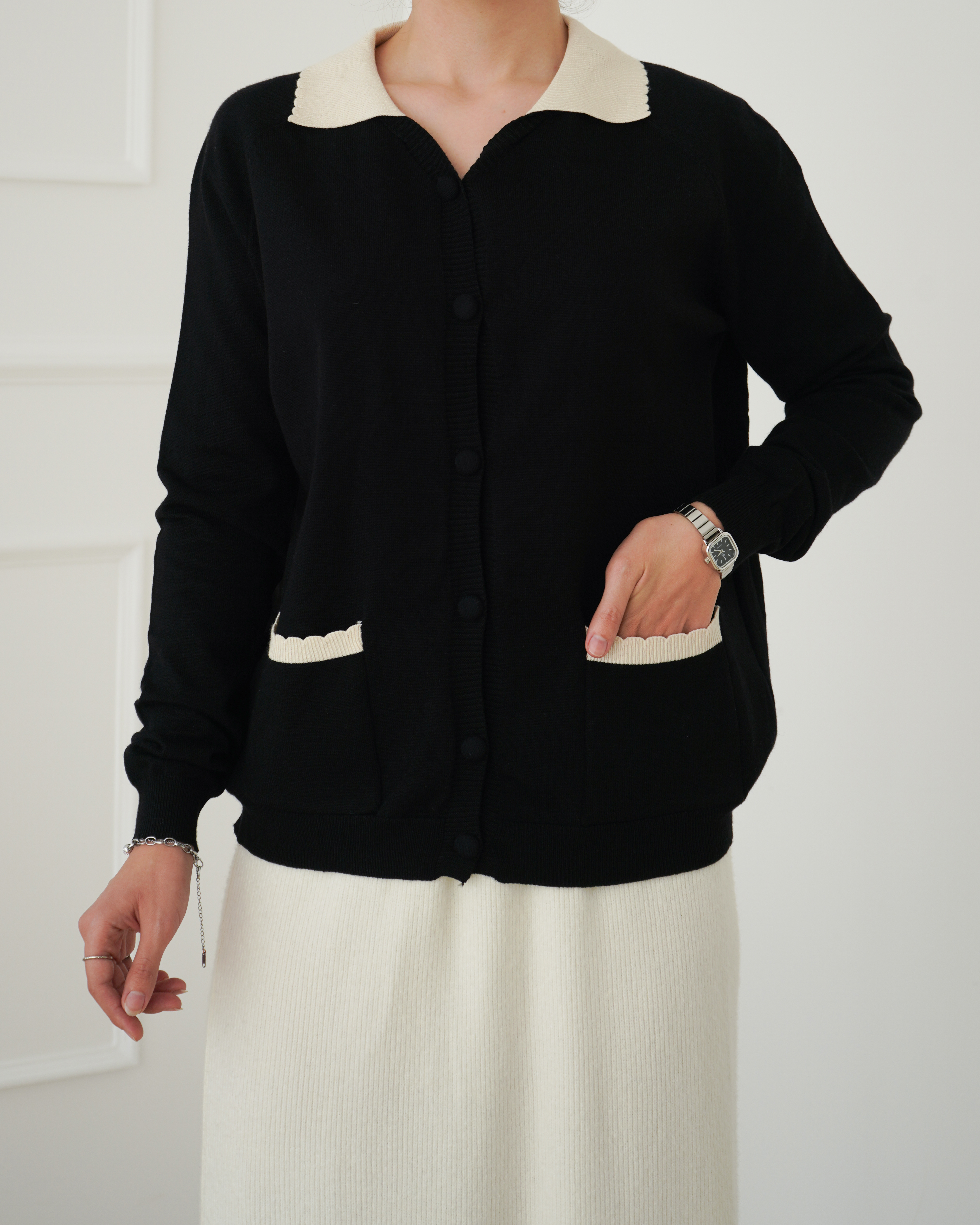 - توضیحات محصول: جنس ژاکت بافت می باشد. ژاکت یقه مردانه و آستین بلند بوده و دکمه های قسمت جلو ژاکت و جیب ها کاربردی می باشند.