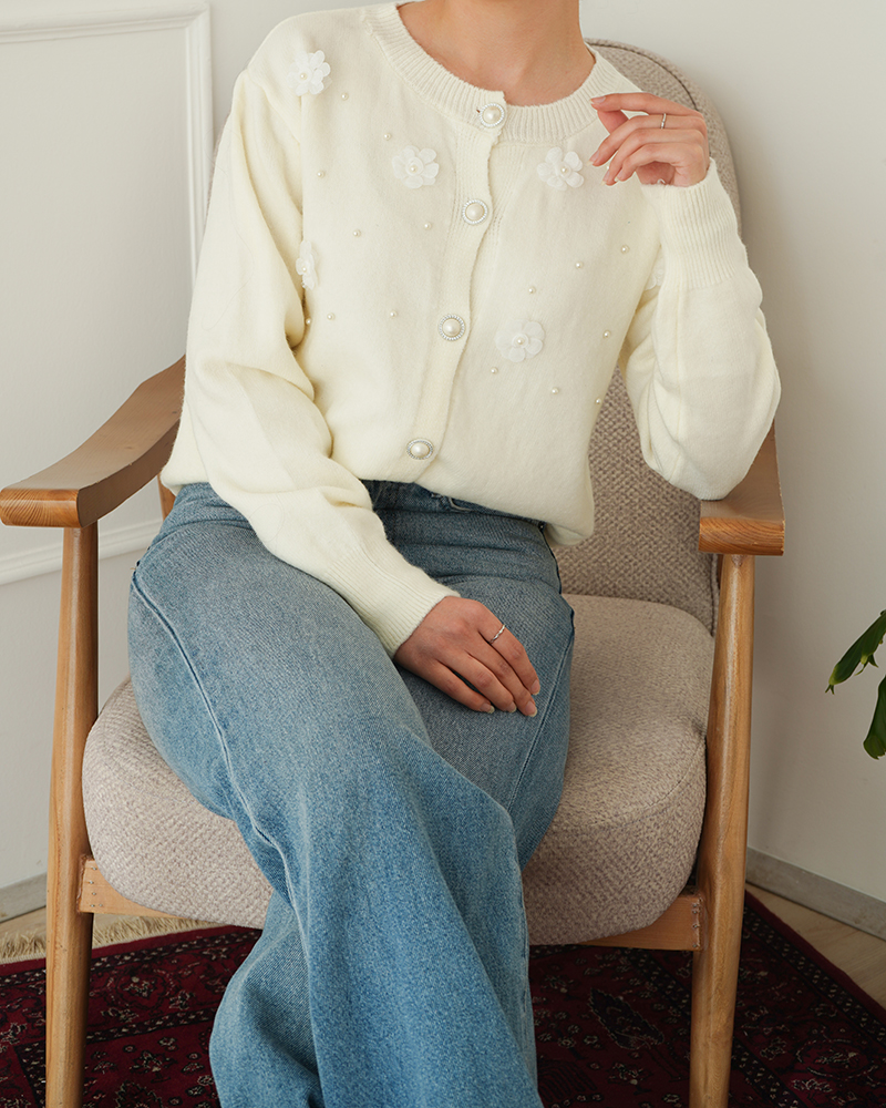 ژاکت بافت گل برجسته | هیبا