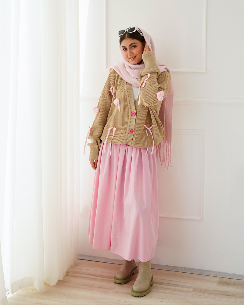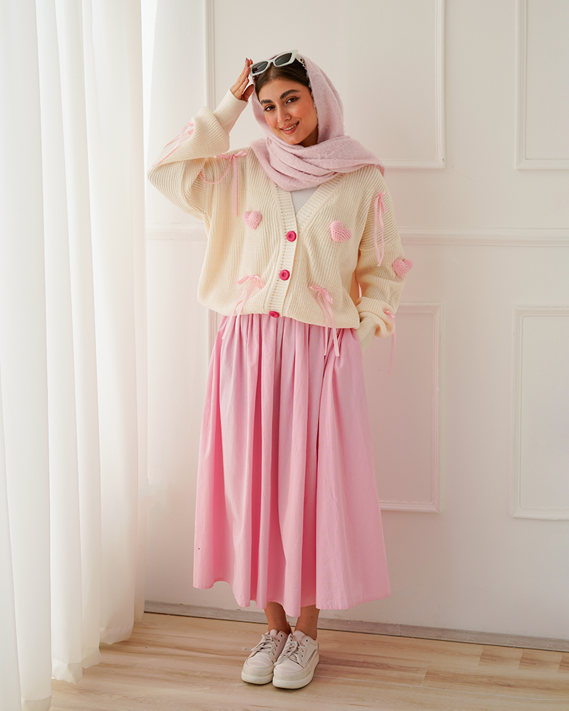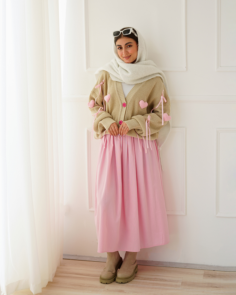 - توضیحات محصول: جنس ژاکت بافت می باشد. دکمه های این محصول کاربردی هستند. ژاکت بسیار با کیفیت ،نرم و لطیف همراه با کشسانی بالا مناسب استفاده روزمره می باشد.این محصول یقه هفت بوده و قلب های روی لباس دوخته شده می باشد.