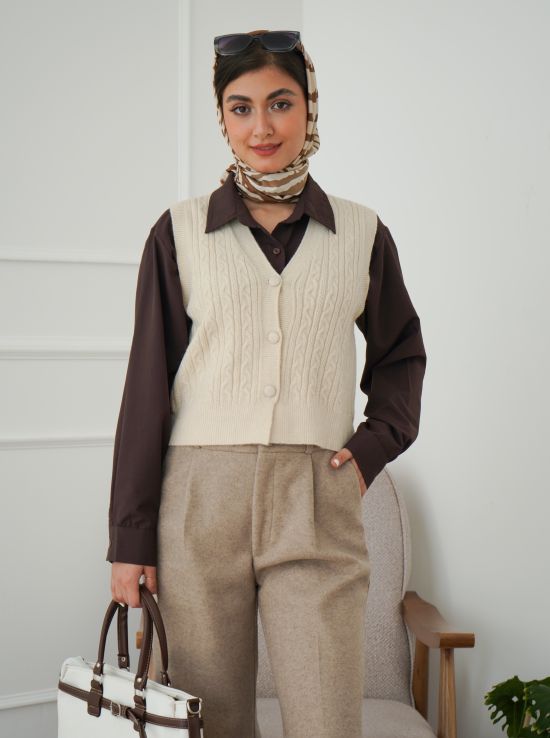 - توضیحات محصول: جنس ژیله بافت پشمی می باشد.. جلیقه یقه هفت می باشد. این محصول بسیار نرم و لطیف همراه با کشسانی بسیار بالا مناسب استفاه روزمره است.دکمه های قسمت جلو یقه کاربردی هستند.